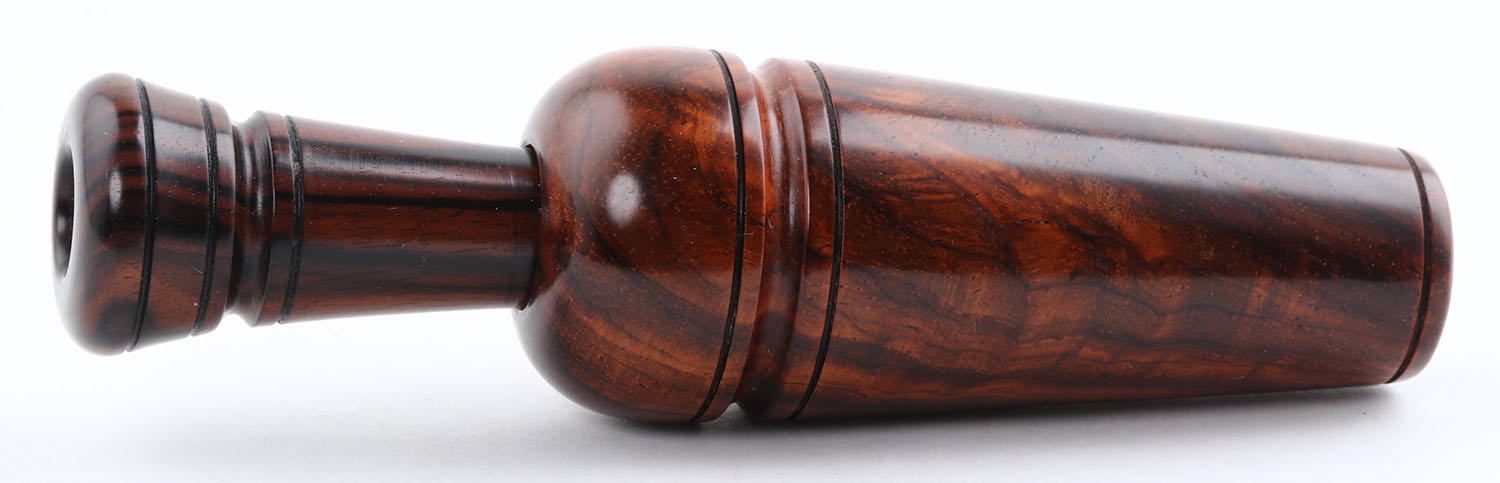 Dennis Poeschel Duck Call, Milwaukee, WI, 1949-2009, signed & dated inside, plastic reed, 6'' OAL, nice finish. Grade: Excellent - Value: 120 to 250