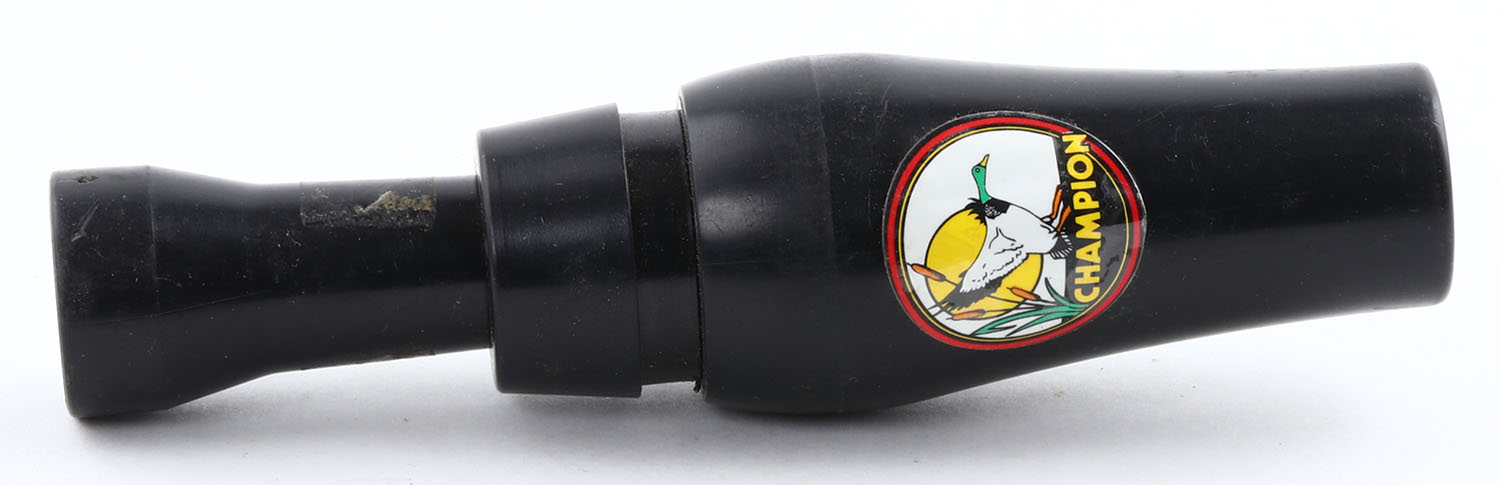 Champion Duck Call, marked with sticker on barrel, missing reed, has some wear & handling marks. Grade: Good - Value: 4 to 20