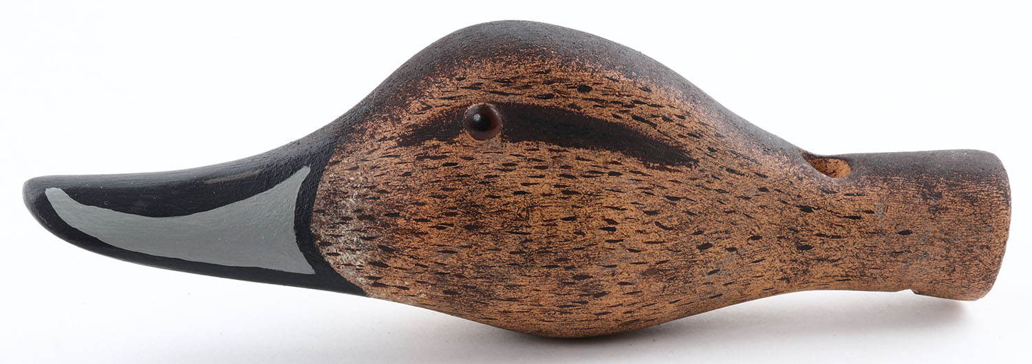 The Duck Head Duck Call by ??, nicely carved & painted, GE, 9'' OAL. Grade: Excellent - Value: 20 to 80