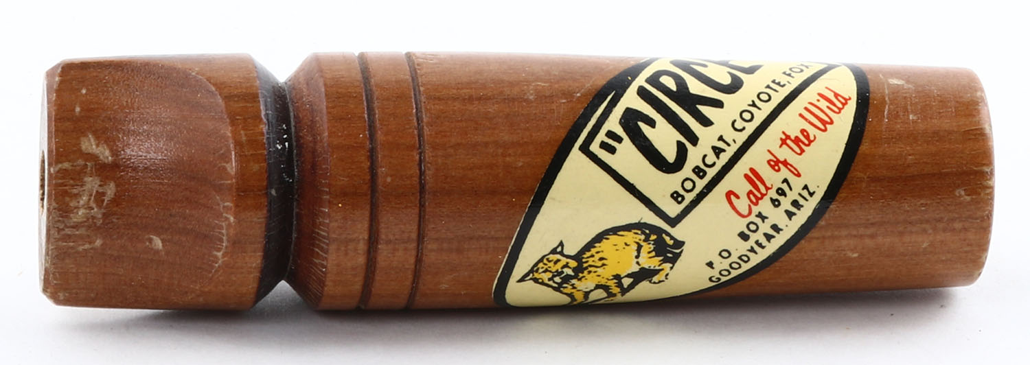 Call of the Wild, Circe, Bobcat, Coyote, Fox, marked with sticker on barrel, 4'' OAL, finish is very good, with wear near the mouth piece. Grade: Excellent - Value: 6 to 30