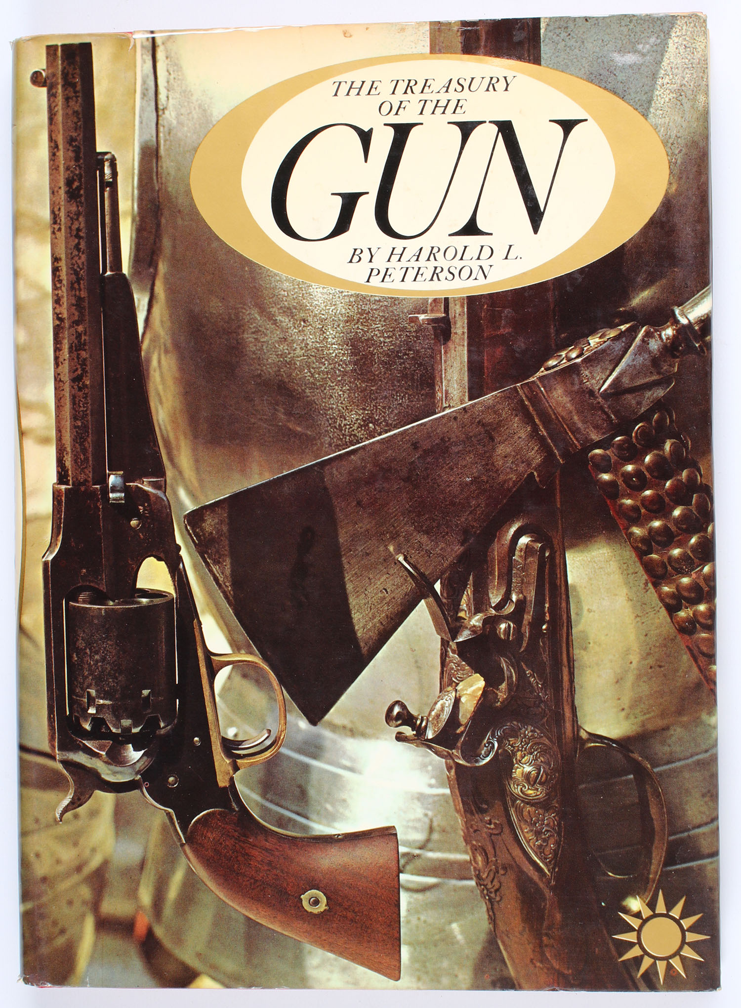 The Treasury of the Gun by Harold L. Peterson 1962, 8 1/2'' x 12''. 252 pages, pages clean, binding tight, hardcover and dustjacket excellent, b/w and colored images. Value: $130 Grade: Excellent + - Value: 10 to 130