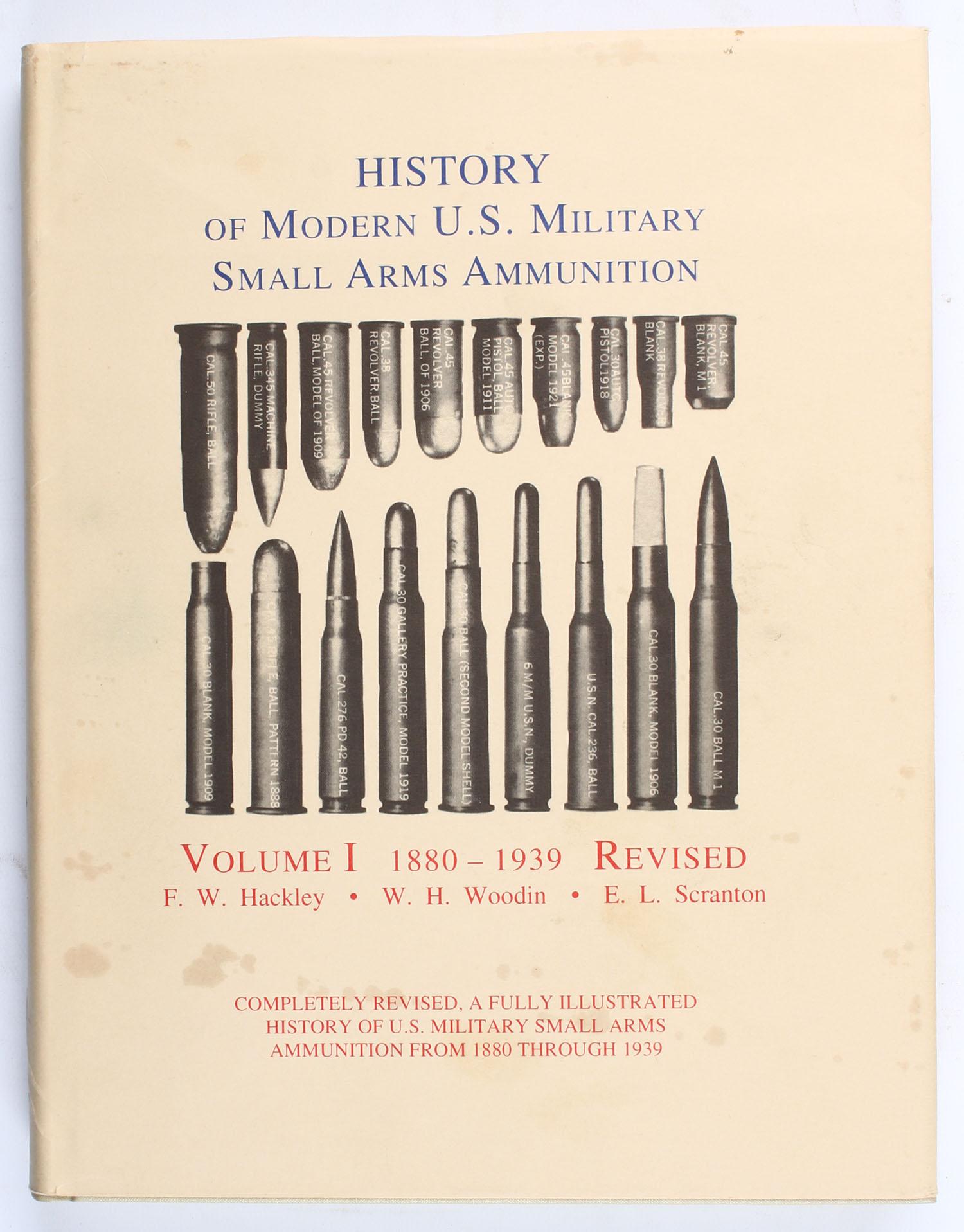History of Modern U.S. Military Small Arms Ammunition: 1967 Volume 1: 1880-1939, 9'' x 11''. 315 pages, pages clean, binding tight, hardcover and dustjacket very good, b/w images. Value $500 Grade: Very Good ++ - Value: 100 to 500