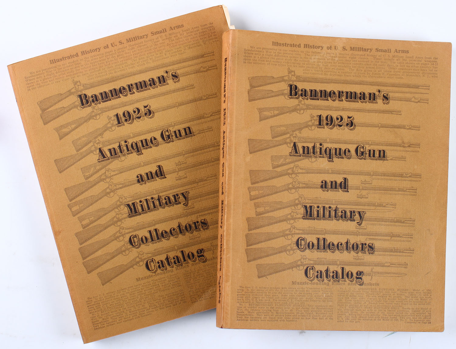 Lot of 2 Bannerman's 1925 Antique Gun and Military Collectors Catalog, 8 1/2'' x 11''. Pages clean, bindings tight, softcover very good. Grade: Very Good ++ - Value: 4 to 80
