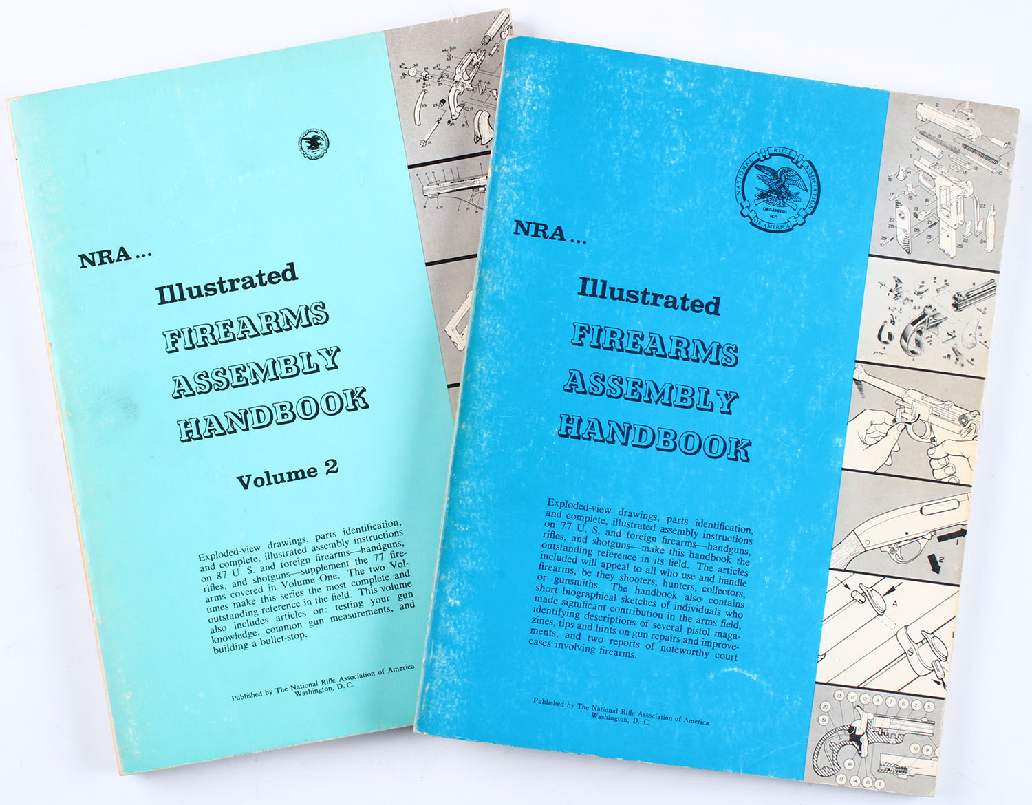 Lot of 2 NRA Illustrated Firearms Assembly Handbook, 8 1/2'' x 11''. Pages clean, binding tight, softcover very good. Grade: Very Good ++ - Value: 6 to 60
