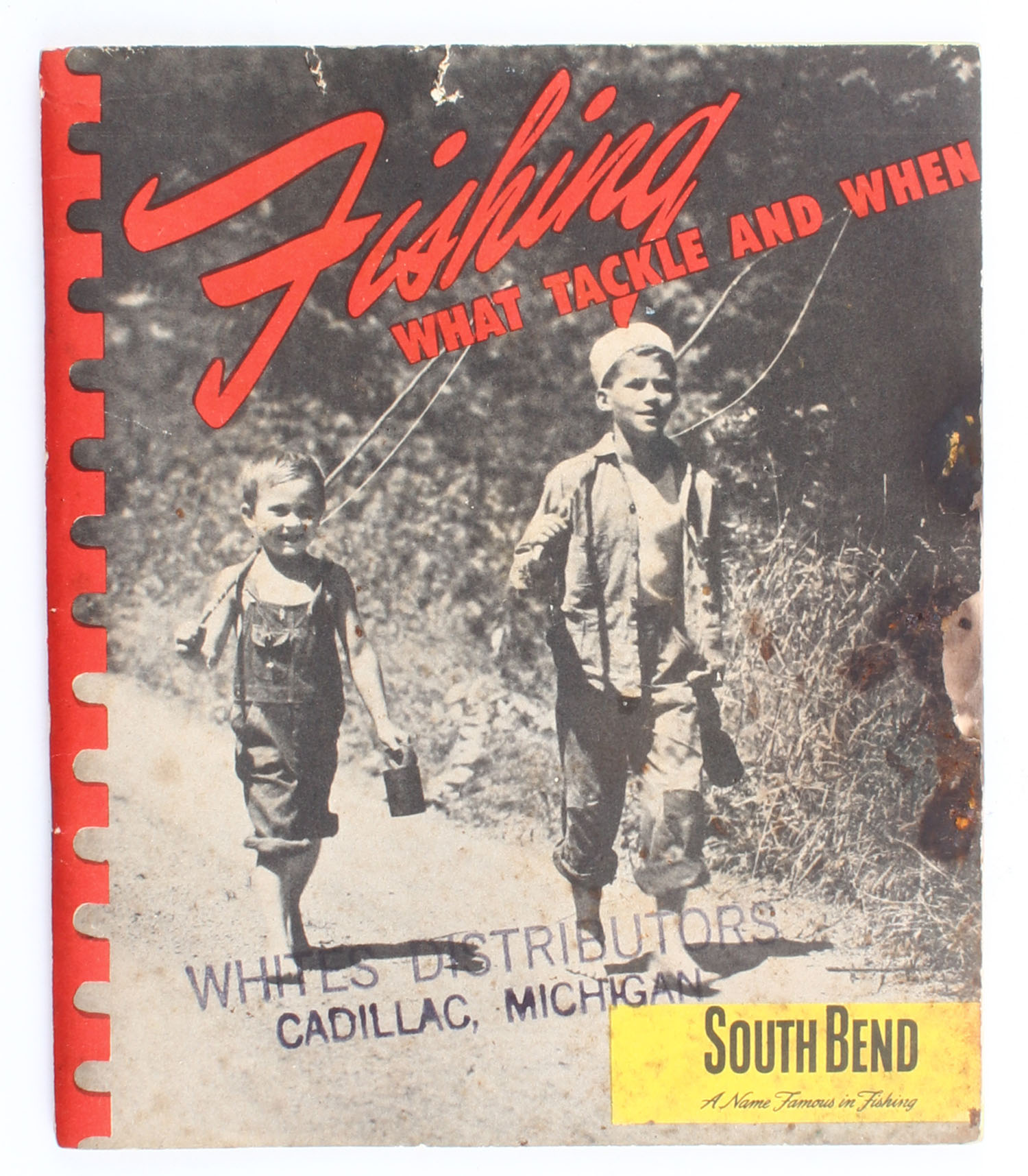 1947 South Bend Fishing Tackle Catalog, full line catalog with 43 pages of items pictured, 5'' x 6'', good color cover front & back, some burn damage to the back of the catalog & a few pages in, pictures rods, reels & lures, many are in color, solid condition. Grade: Good - Value: 2 to 20