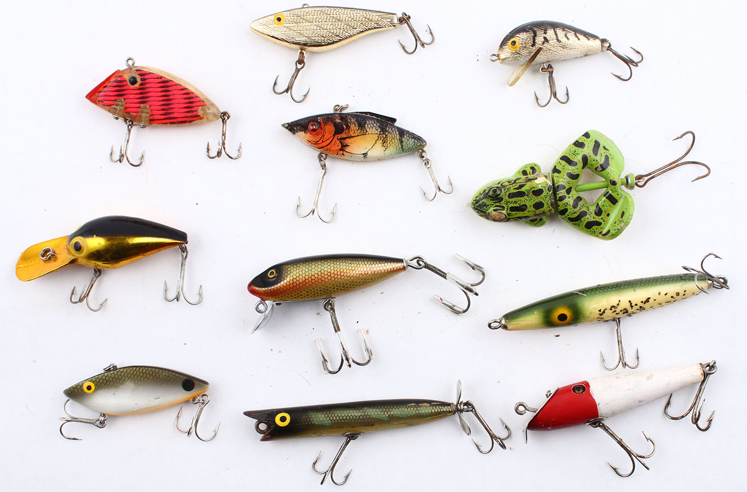 Lot of 11- mixed lures, all different colors/patterns/sizes. Grade: Very Good - Value: 10 to 50