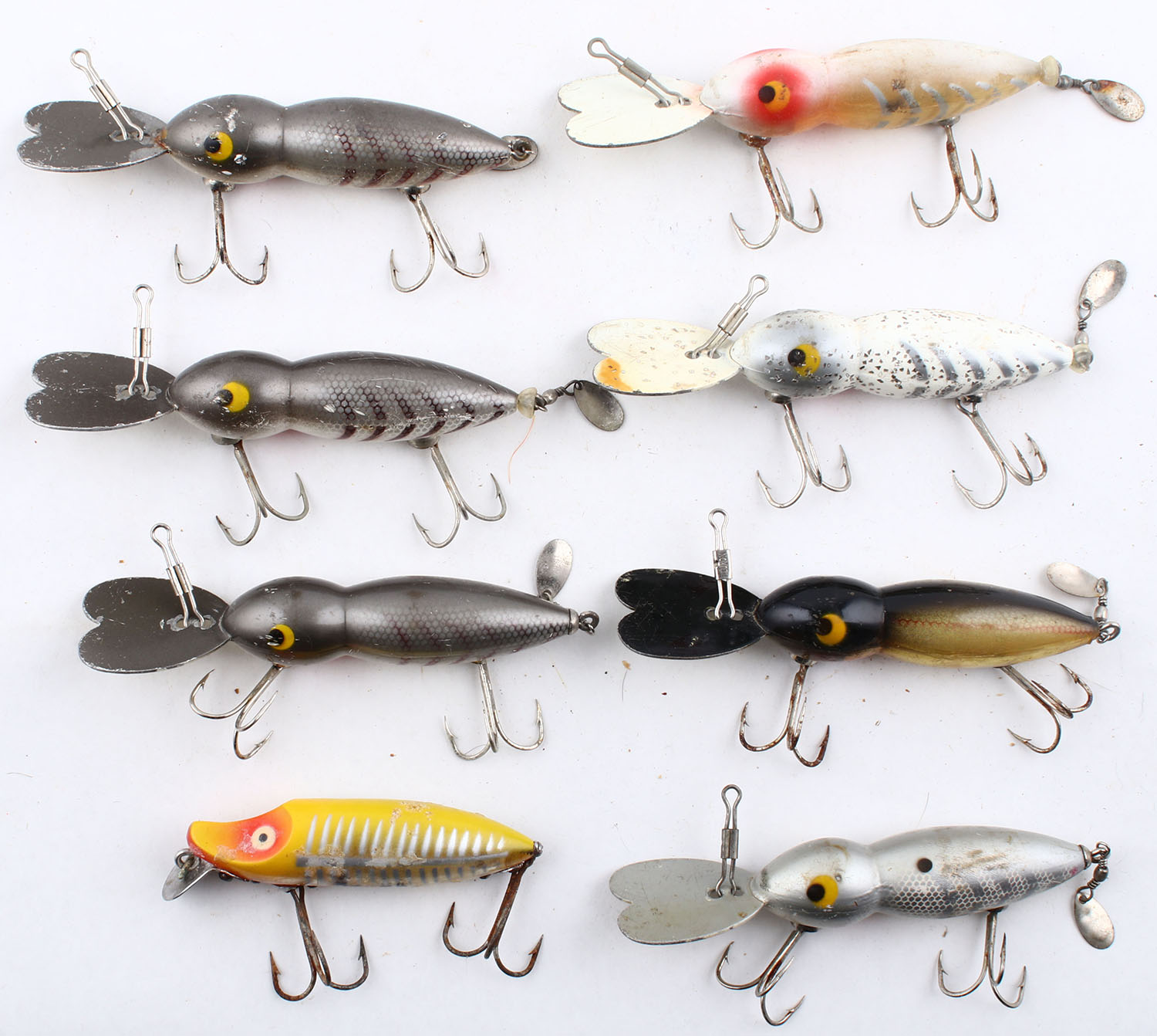 Lot of 8- spook lures, all different colors/patterns/sizes. Grade: Very Good - Value: 10 to 50