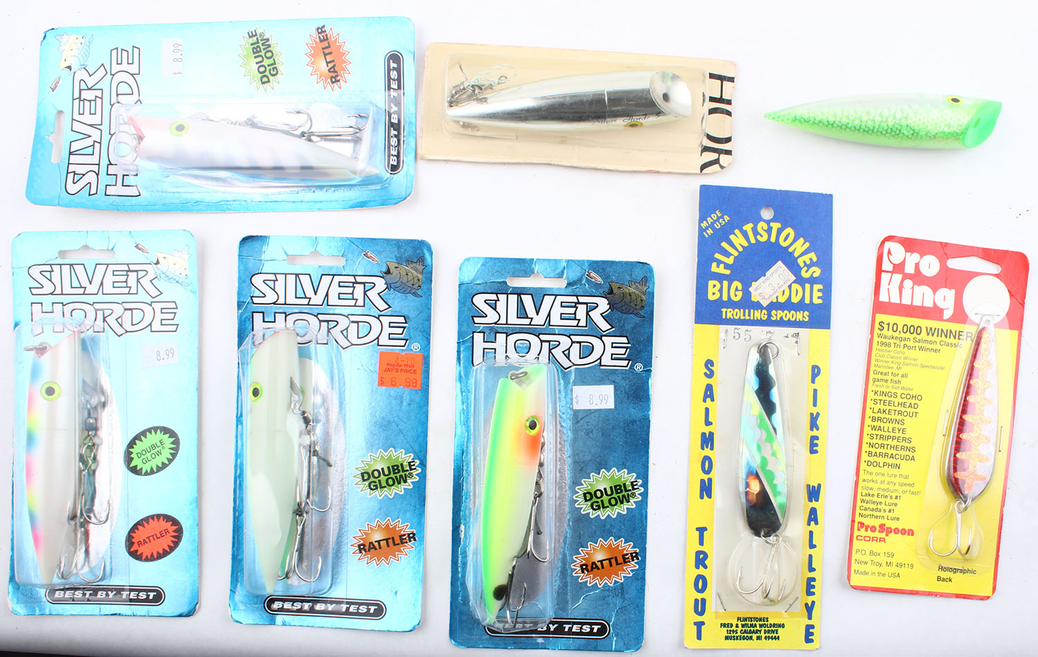 Lot of 8- mixed lures, all different colors/patterns/sizes, 7 are NIB Grade: Excellent ++ - Value: 20 to 60