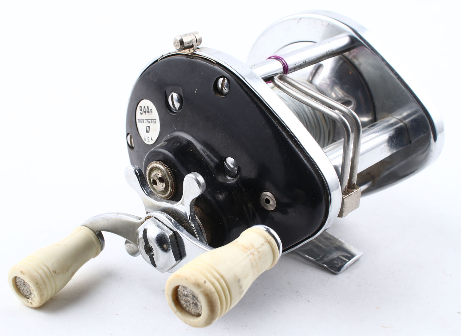True Temper 944F, dual handle, marked on right side plate, strong click, smooth reel turn. Grade: Excellent - Value: 10 to 50