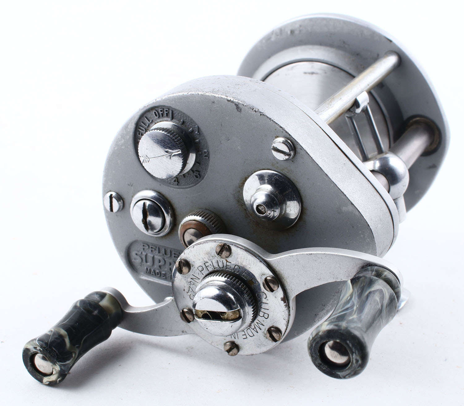 Pflueger Supreme, Pflueger Cub No. 2542, dual handle, marked on the right side & bottom of the reel seat, strong click, smooth reel turn. Grade: Excellent - Value: 10 to 50