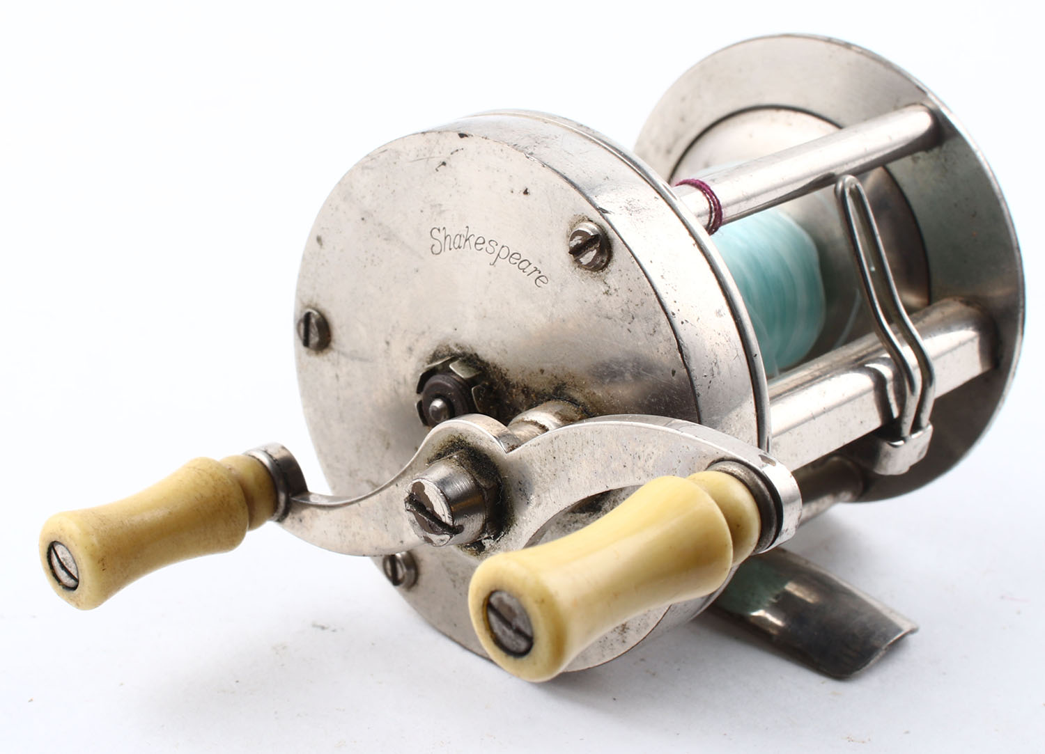 Shakespeare, Kalamazoo Level Winding 1962, dual handle, marked on both side plates & bottom of reel seat, good click, internal discs slightly wobbly, makes a light squeak when rotating. Grade: Very Good - Value: 10 to 50
