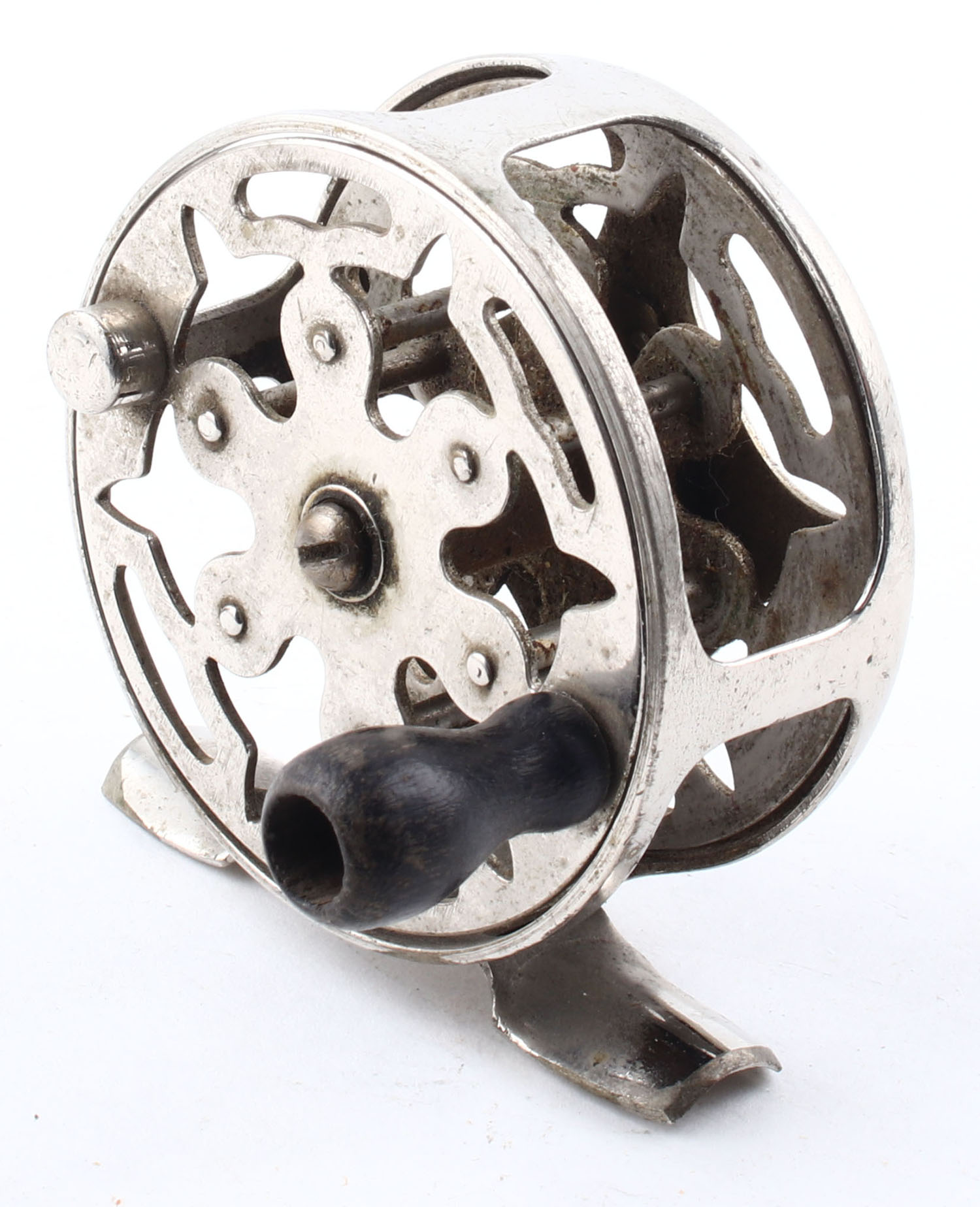 | Unmarked Fly Reel, 80 yds, single handle, nickel steel, clear cl...