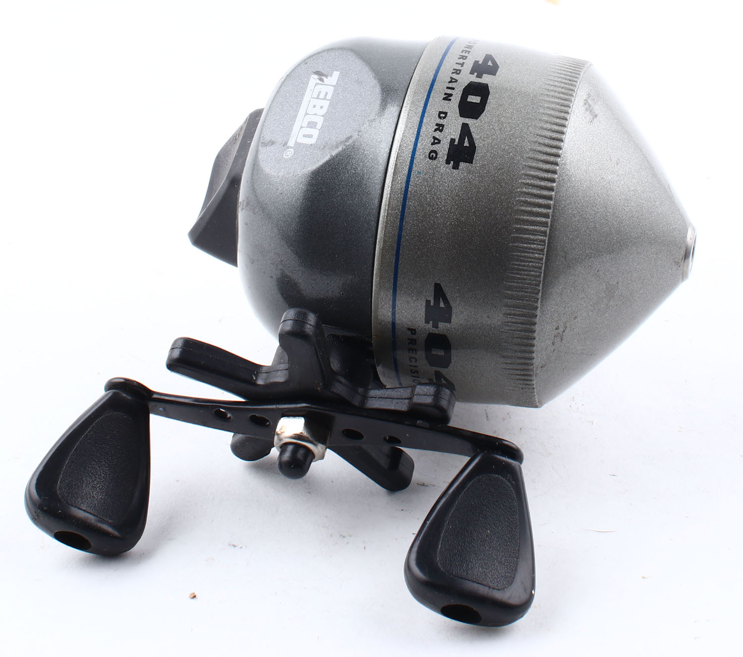 Zebco Model 404, push button, enclosed face spinning reel, dual handle, strong clicks, smooth reel turn. Grade: Excellent - Value: 6 to 30