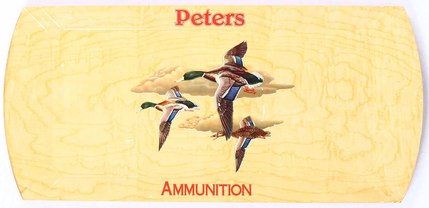 Vintage Peters Ammunition Retailer's Counter Tray, Featuring mallards in flight, 16'' x 8''. Grade: Excellent + - Value: 100 to 300