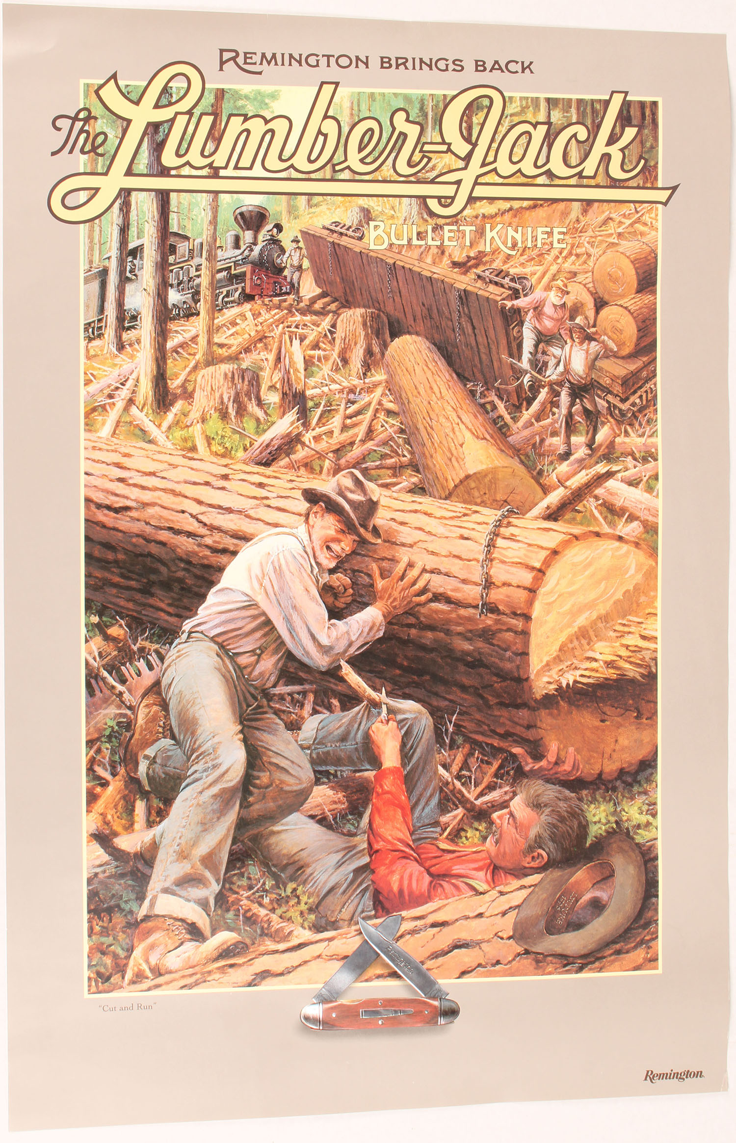Remington ''Lumber-Jack'' Knife Poster, 1997, original mailing tube. Grade: Excellent ++ - Value: 20 to 80
