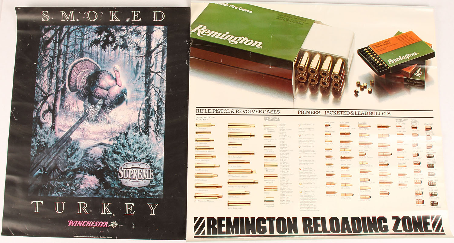 Lot of 2- (1) Winchester (1) Remington poster, both full color images, tack holes, some edge & corner wear to both. Grade: Very Good++ - Value: 10 to 40