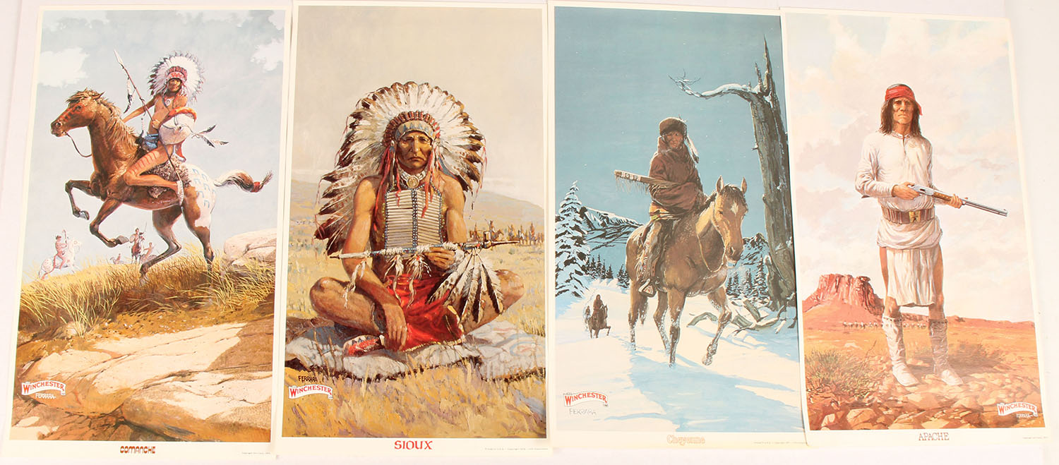 Lot of 4 Native American Posters, (1) Apache, (1) Cheyenne, (1) Comanche, (1) Sioux, all full color images, excellent colors, comes in mailing tube. Grade: Excellent + - Value: 10 to 50