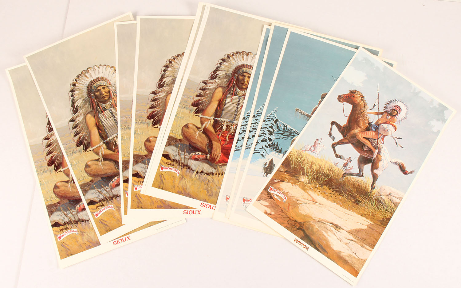 Lot of 14 Winchester Native American Posters (1) Comanche, (3) Cheyenne, (10) Sioux, all full color images, all excellent colors. Grade: Excellent + - Value: 20 to 60