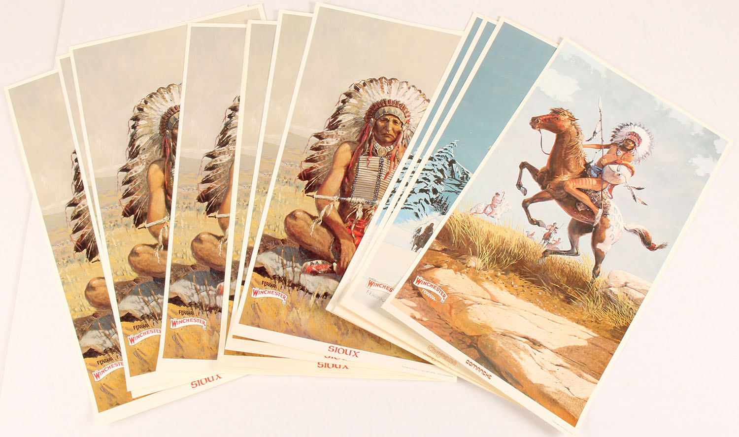 Lot of 14 Winchester Native American Posters (1) Comanche, (3) Cheyenne, (10) Sioux, all full color images, all excellent colors. Grade: Excellent + - Value: 20 to 60