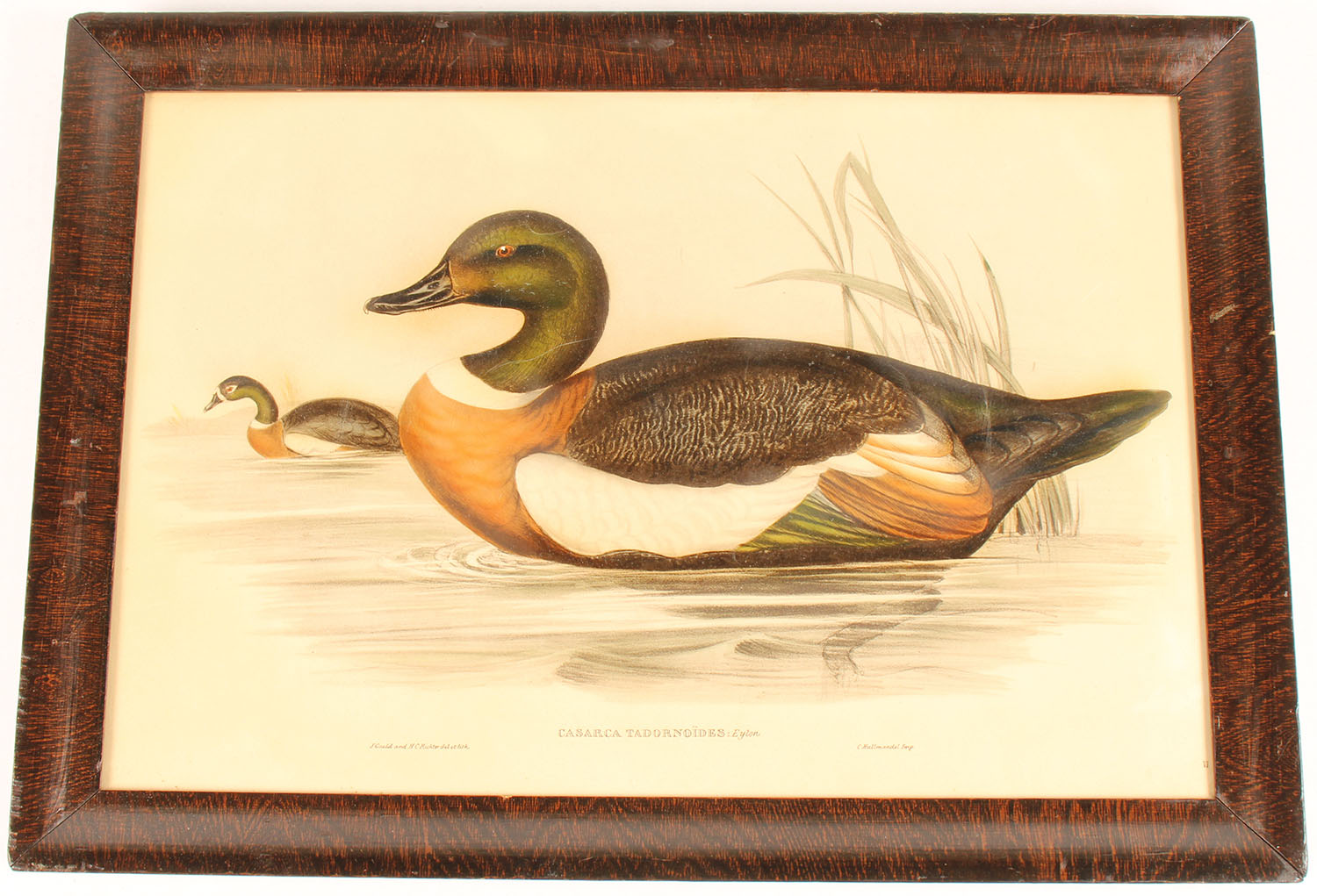 J. Gould & H.C Richter ''CASARCA TADORNOIDES'' or ''MOUNTAIN DUCK'' Print. This originally comes from ''Birds of Australia''. Pictures a full color image of a pair of mountain ducks, excellent colors, framed, 24'' x 17''. Grade: Excellent - Value: 20 to 200