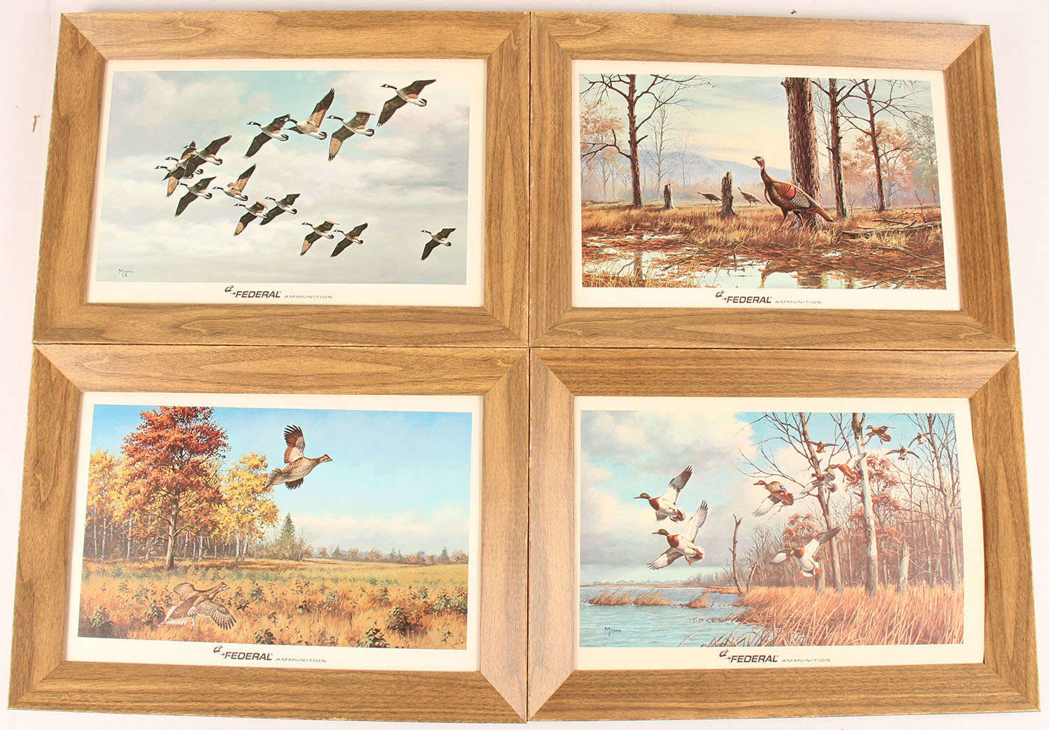 Lot of 4 Federal Ammunition Prints, self framed, full color images of geese, ducks, quail & turkeys, 20 x 14 1/2''. Grade: Excellent - Value: 20 to 80