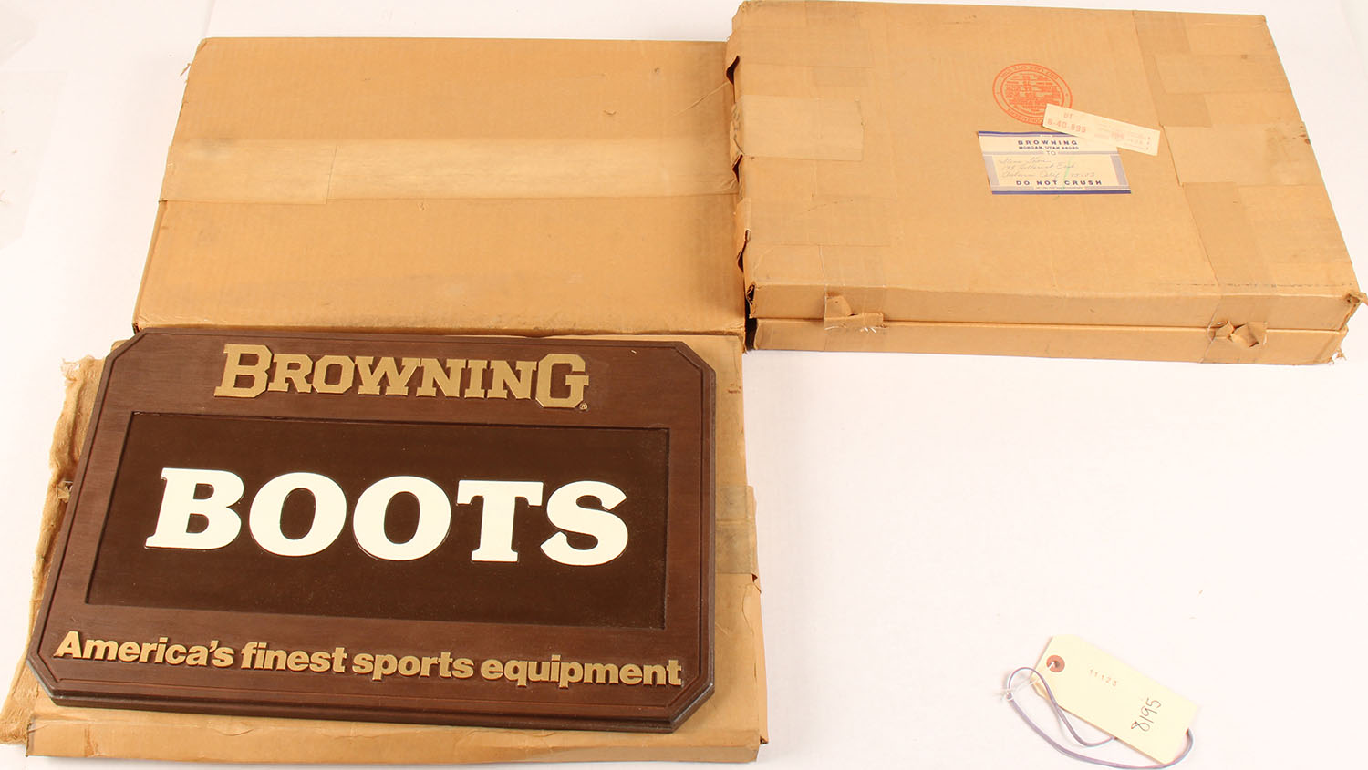 Lot of 4 Browning Plaques, (1) Archery, (1) Boots, (2) Clothing, sealed in original carboard packages - Value: 20 to 80