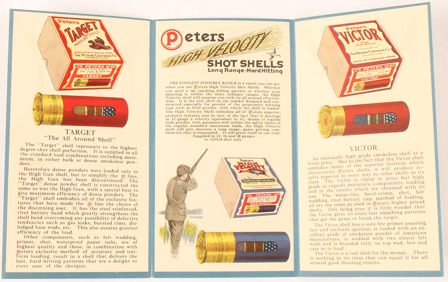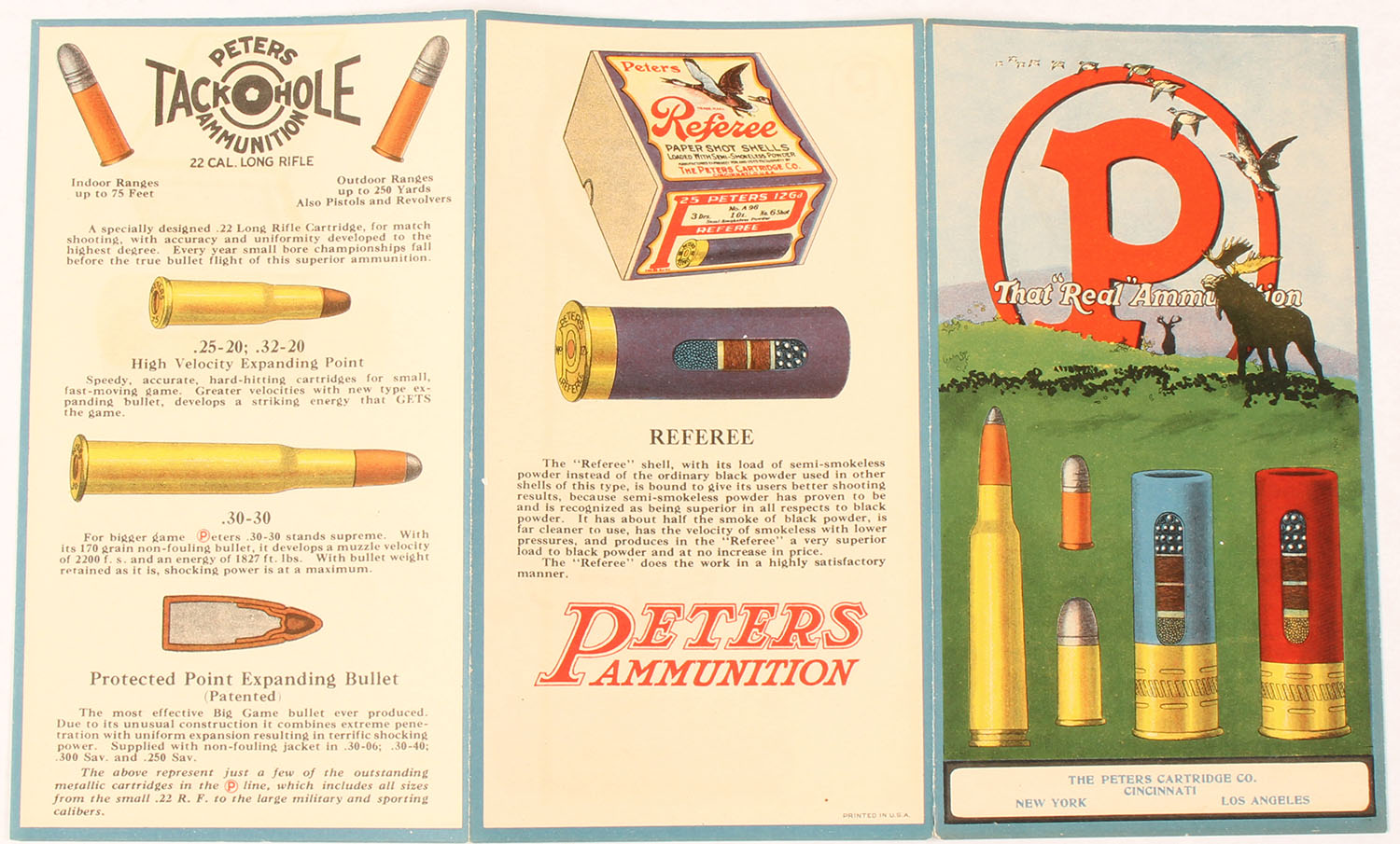 The Peters Cartridge Co. ''That ''Real'' Ammunition'' Brochure, tri-fold brochure with full color images, fantastic & vivid colors. Grade: Excellent ++ - Value: 100 to 300