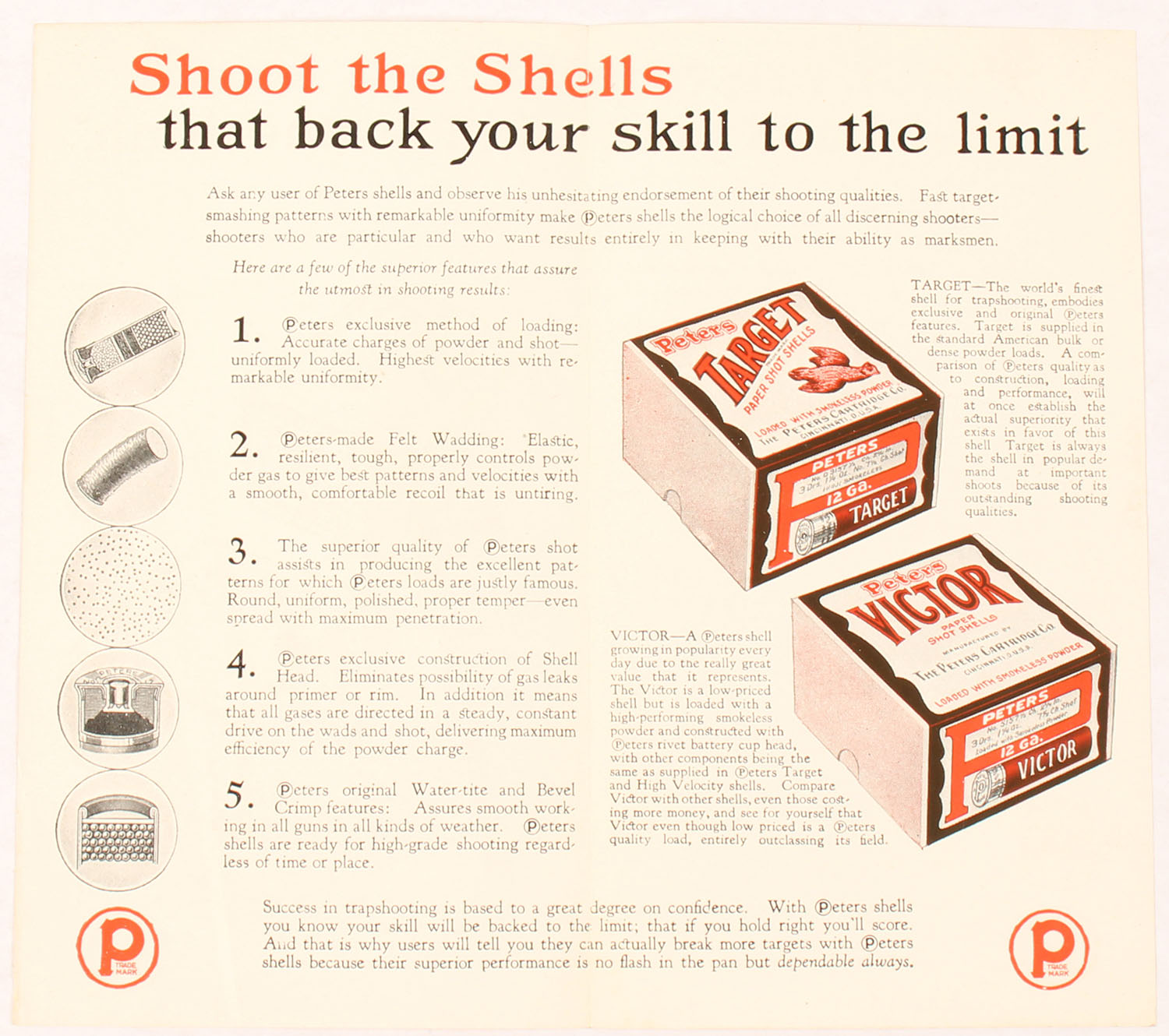 The Peters Cartridge Co. ''PULL'' Brochure, single page folding brochure with black/red/white images, fantastic & vivid colors. Grade: Excellent + - Value: 30 to 90