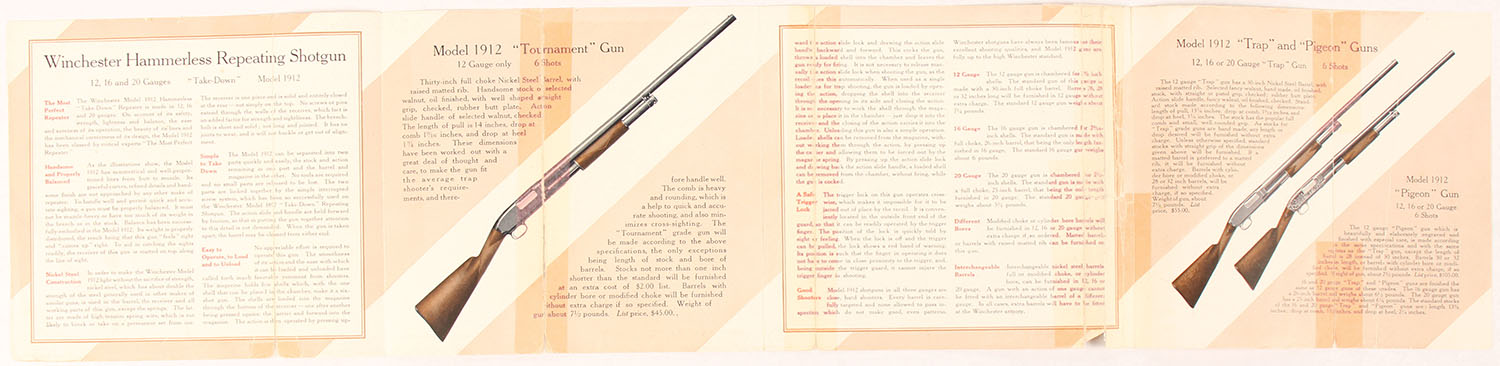 Winchester Model 1912 Hammerless Repeating Shotguns Brochure, has multiple tape repairs. Grade: Good - Value: 4 to 20