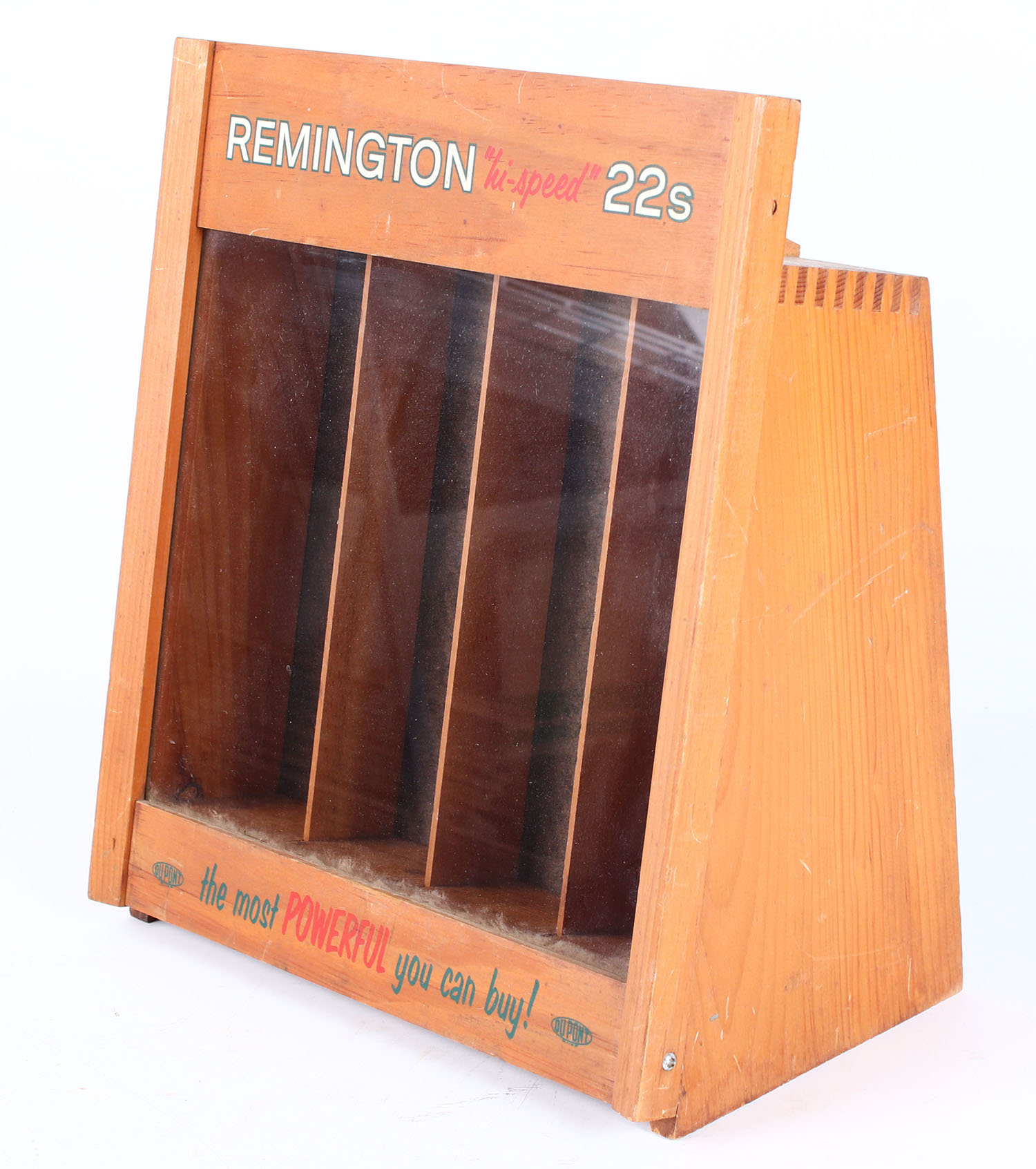 Remington HI-SPEED 22's display, wood is solid, wood lock piece functions, red, green and white print has nice color. Grade: Excellent ++ - Value: 300 to 600