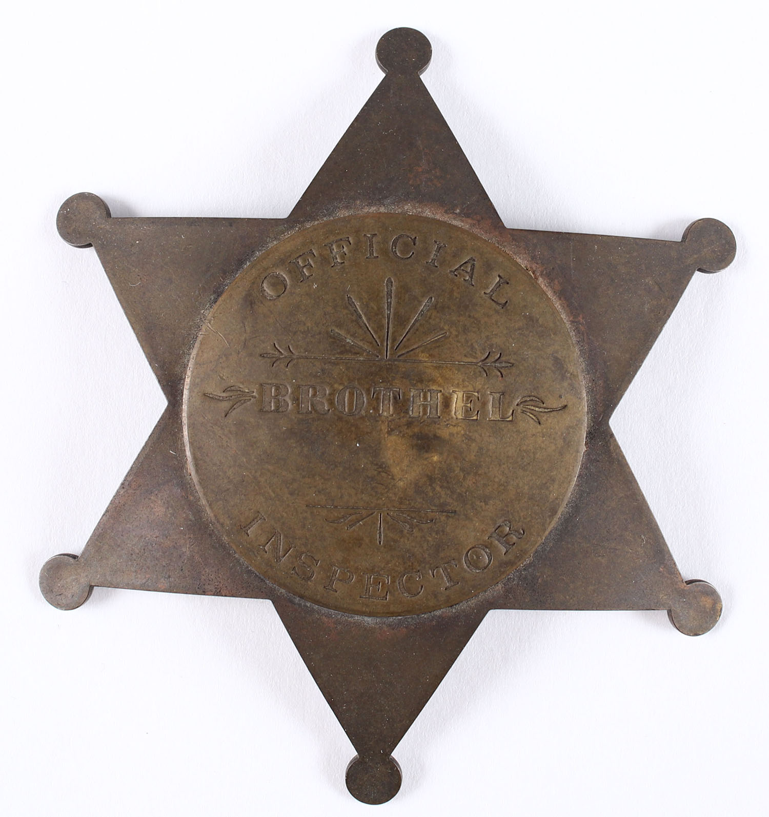 Antique brass badge Official Brothel Inspector, back marked, Garnarvon? Grade: Excellent - Value: 50 to 150