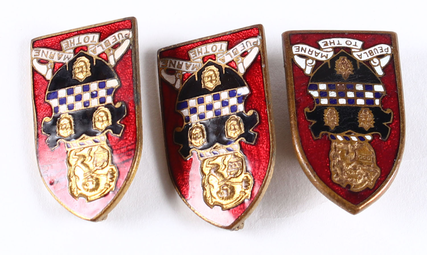 Lot of 3 military pinbacks. Grade: Excellent - Value: 10 to 40