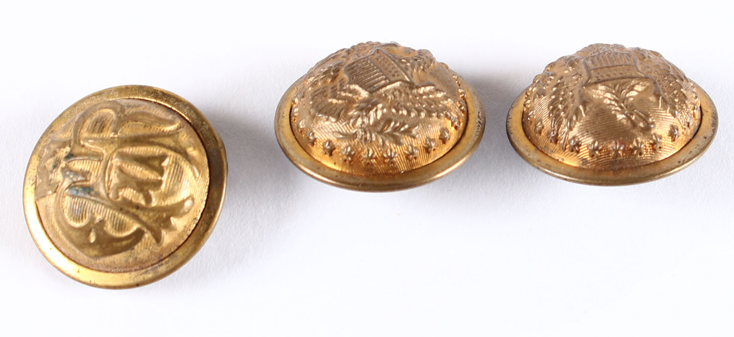 Lot of Civil War uniform buttons and GAR cuff button. Grade: Excellent - Value: 10 to 20