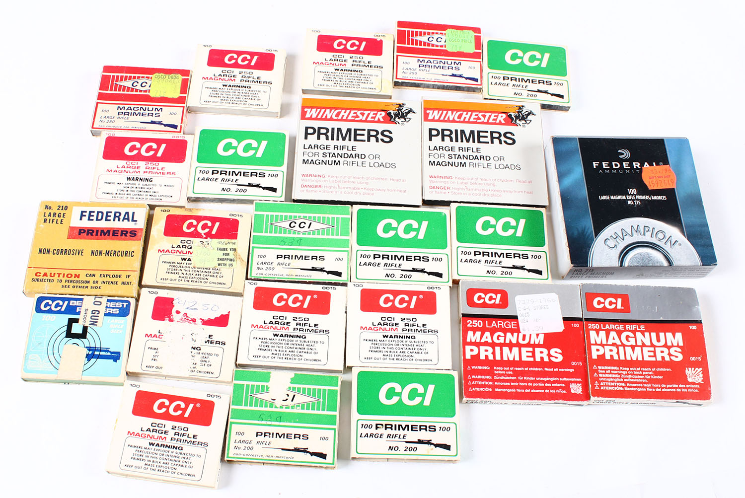 Large lot of primer boxes, all partial. Grade: Very Good - Value: 30 to 90