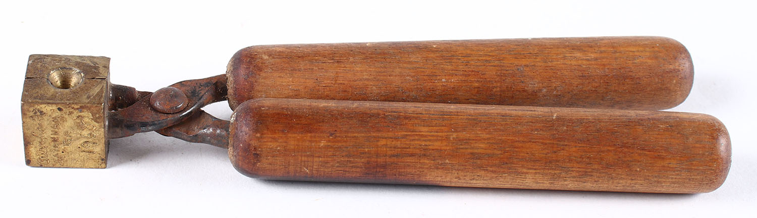 RARE! Mark B Burnharm bullet molds, made in Savannah, Georgia ca 1950-1968, this tool dated 1968 and .422 cal., blonde wood handles. Grade: Excellent TQ - Value: 40 to 80