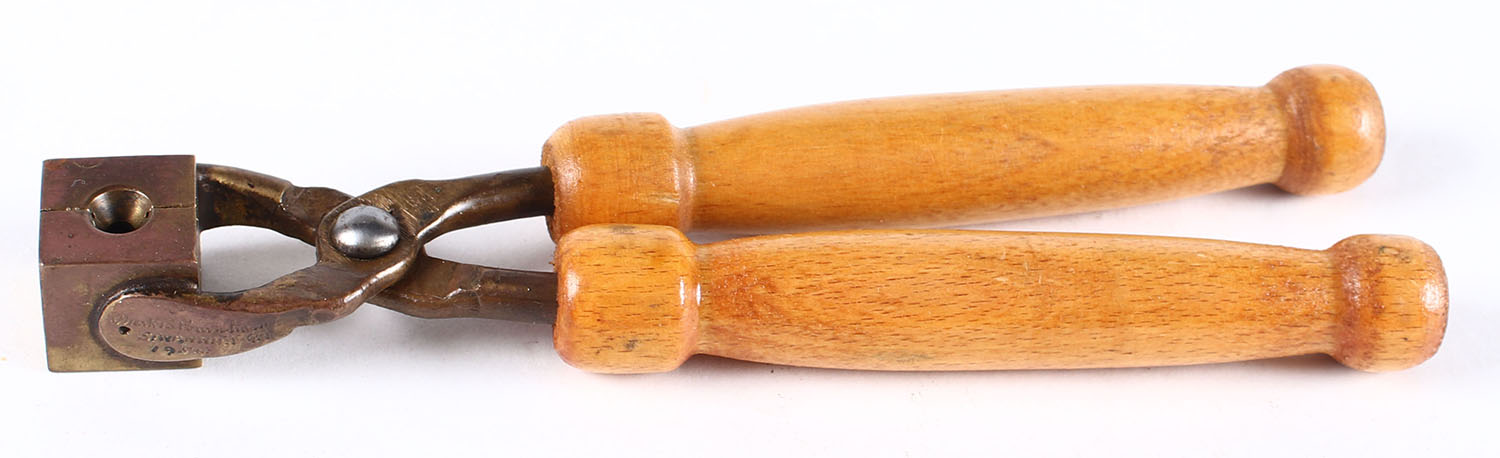 RARE! Mark B Burnharm bullet molds, made in Savannah, Georgia ca 1950-1968, this tool dated 1954 and .400 cal., blonde wood handles. Grade: Excellent - Value: 40 to 80