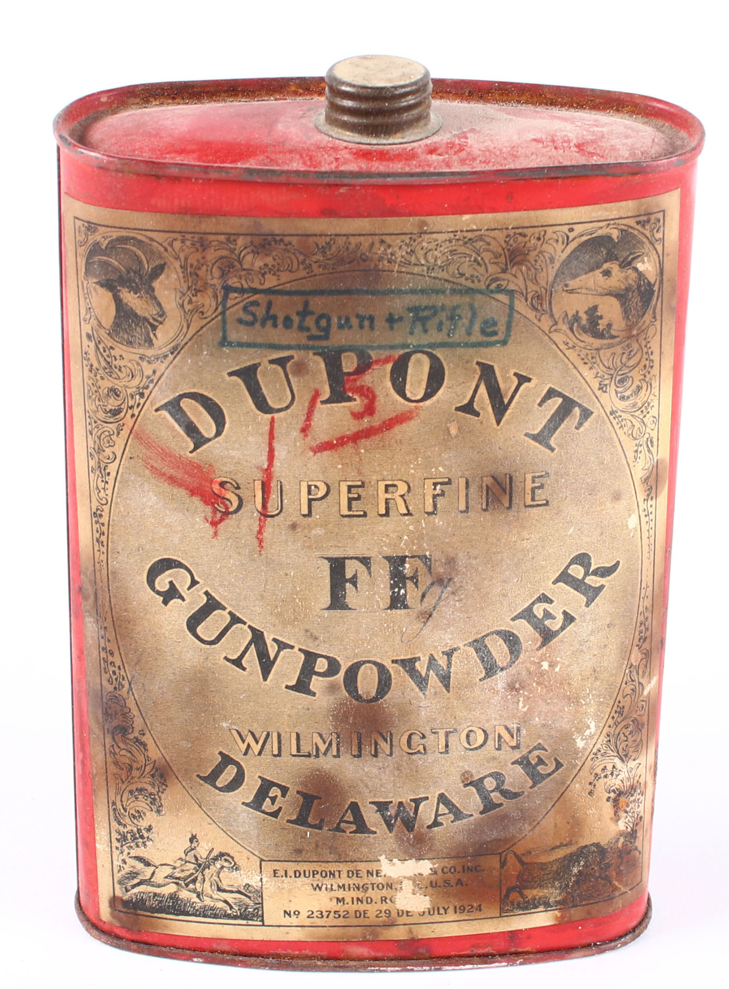 Dupont FFg Gunpowder, has age soiling, nearly Full. Grade: Very Good - Value: 16 to 50
