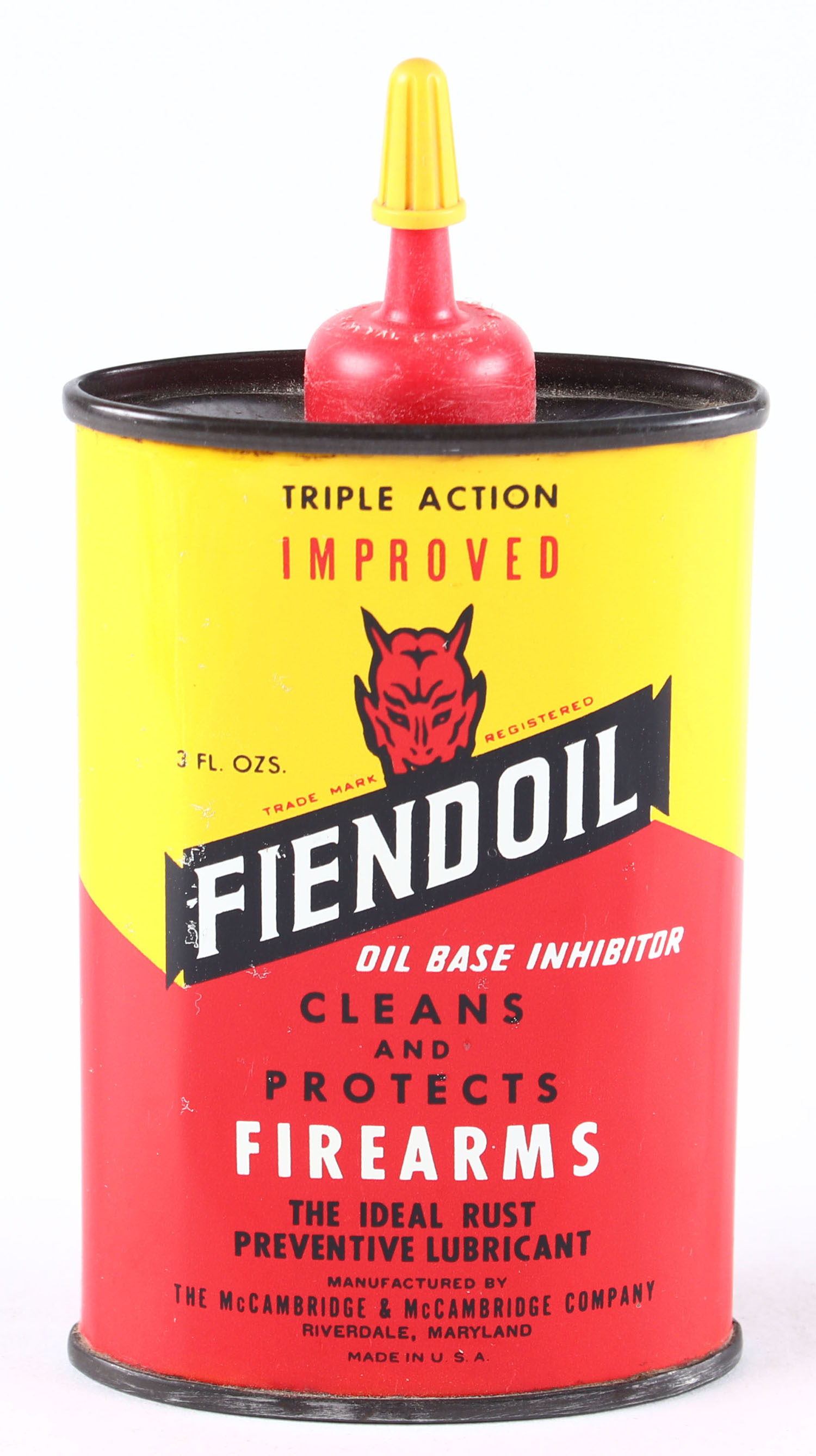 Fiendoil oil tin, plastic spout and cap , Empty. Grade: Excellent - Value: 10 to 50