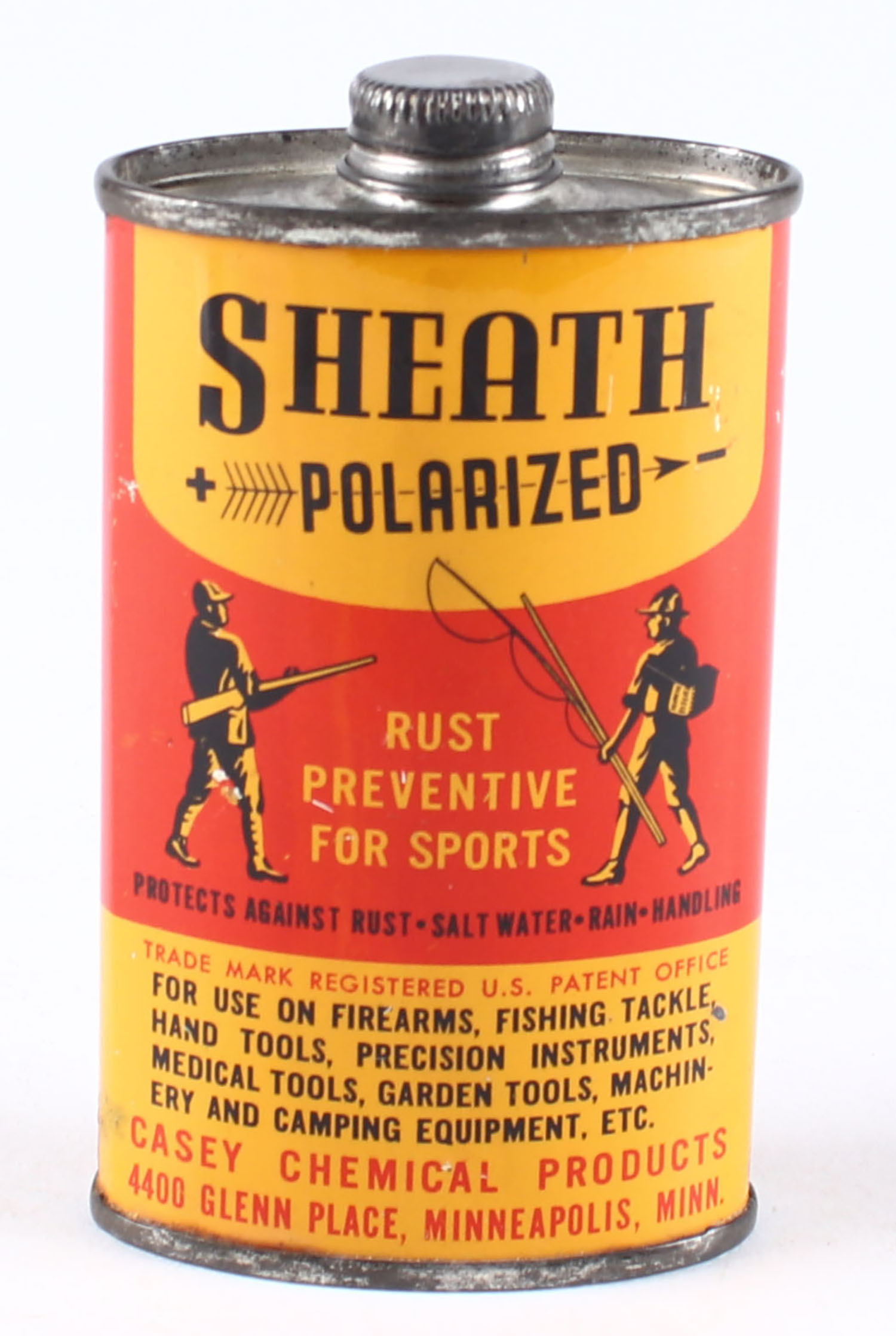 Casey Chemical Product Sheath Gun Oil Tin, partial, very bright and clean. Grade: Excellent - Value: 20 to 60