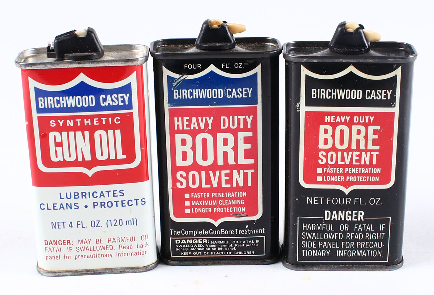 Lot of 3 Birchwood Caset oil tins, all partial . Grade: Excellent - Value: 10 to 50