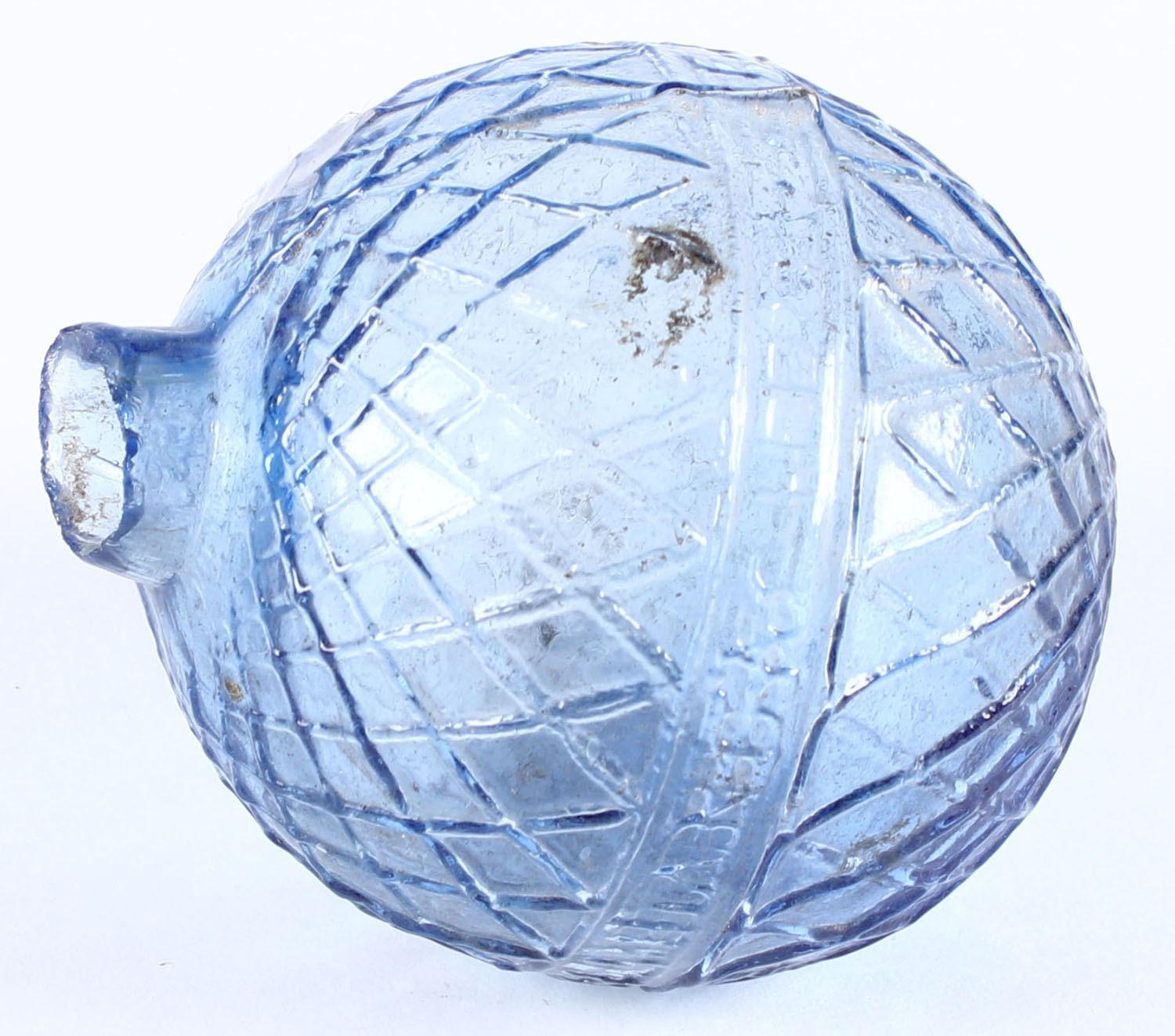 RARE! Light Blue Glass Target Ball, fishnet design, 3 piece, high neck. Grade: Excellent + - Value: 300 to 600