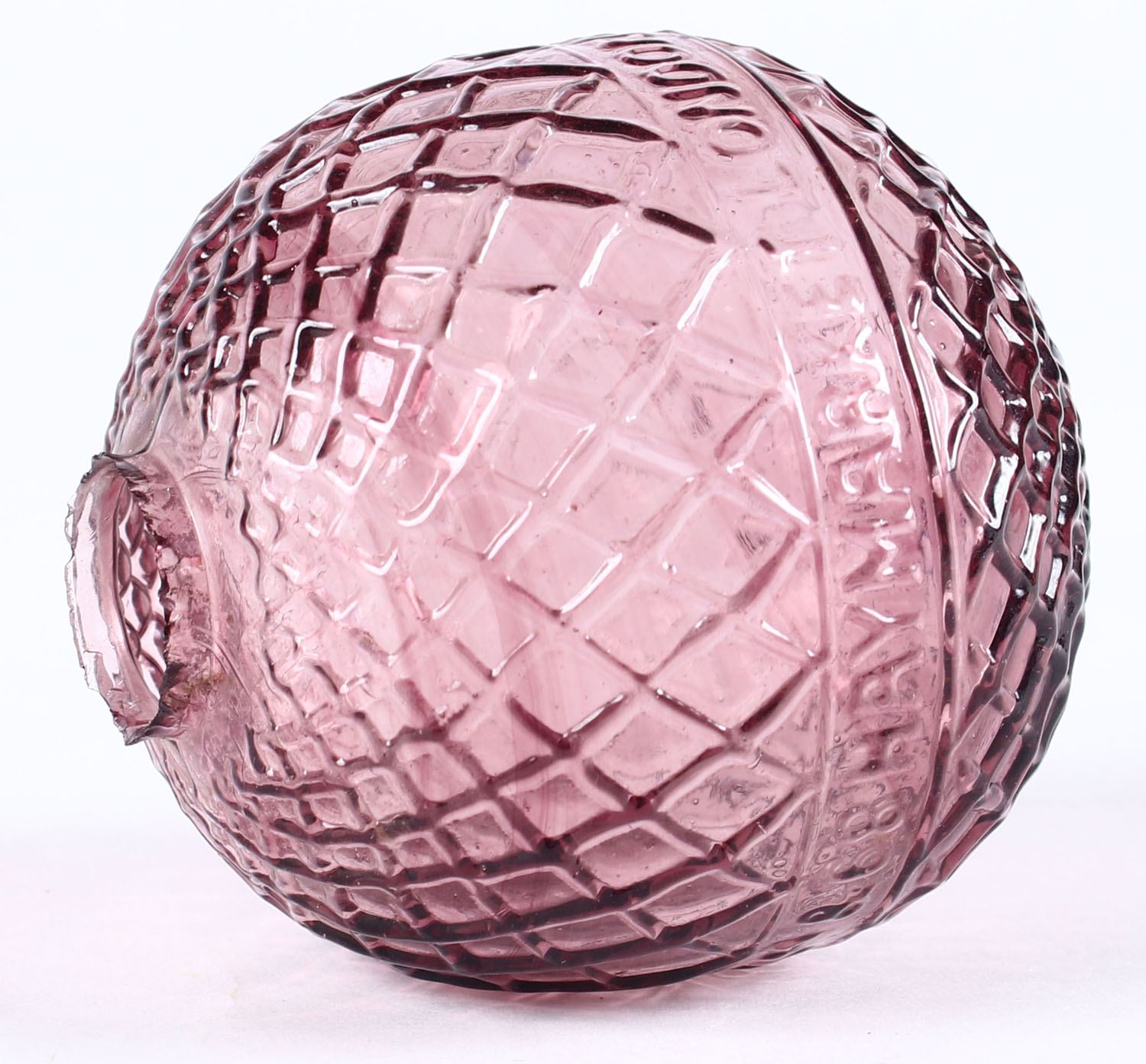 RARE! Amethyst Glass Target Ball, fishnet design, ''W.W. Greener St Mary's Works Burmm & 68 Haymarket London'', 3 piece, low neck, wonderful condition. Grade: Excellent ++ - Value: 300 to 800