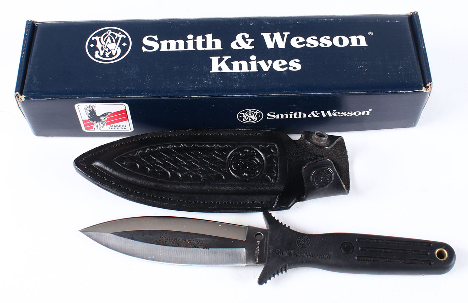 S&W fixed blade knife, Military #830, in original case and sheath. Grade: Excellent ++ - Value: 20 to 60