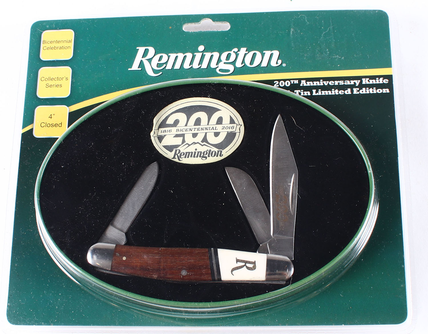 Remington folding blade knife, 200th anniversary, in original box. Grade: Excellent ++ - Value: 40 to 80