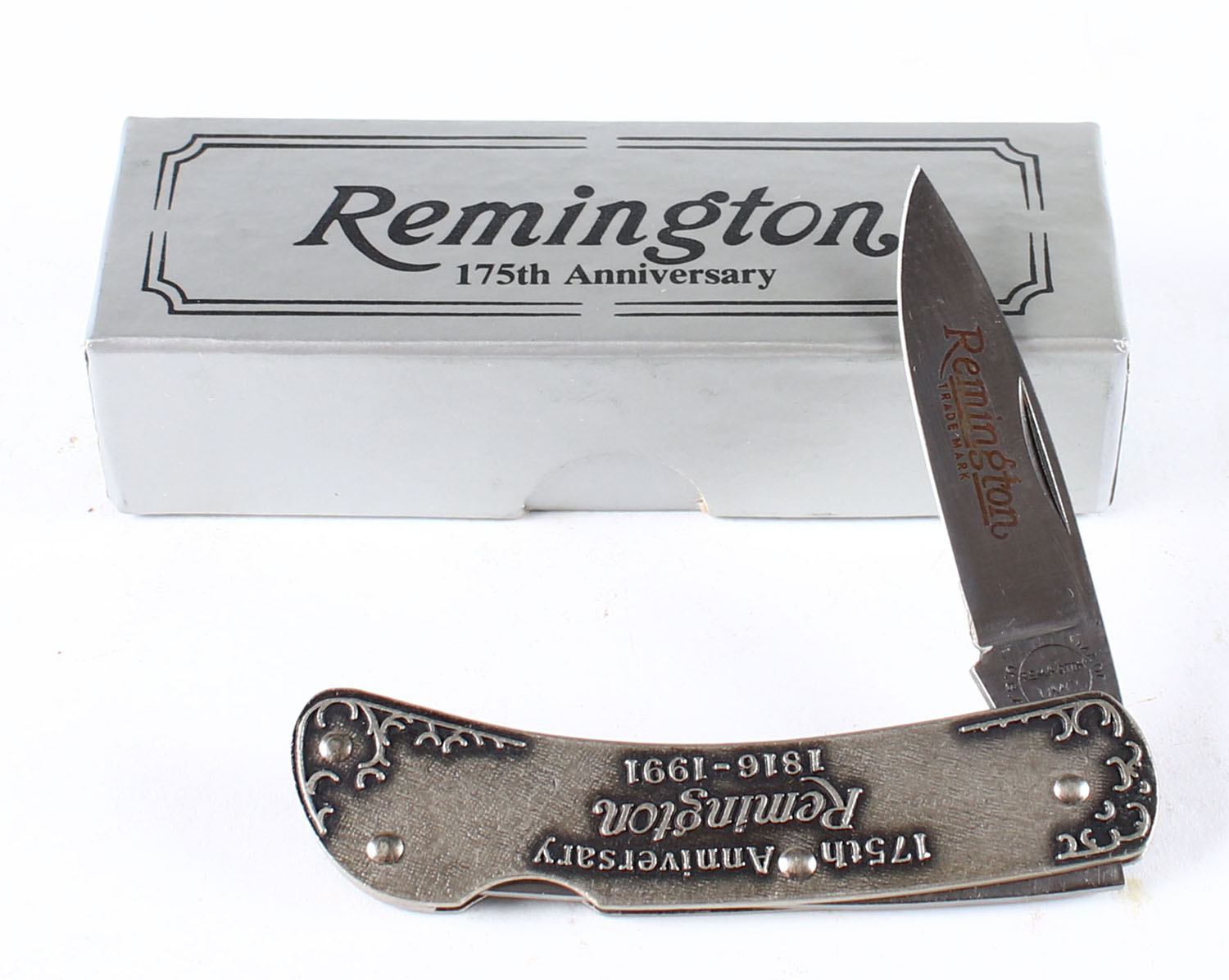 Remington 175th anniversary knife, folding knife, in original box. Grade: Excellent ++ - Value: 20 to 60