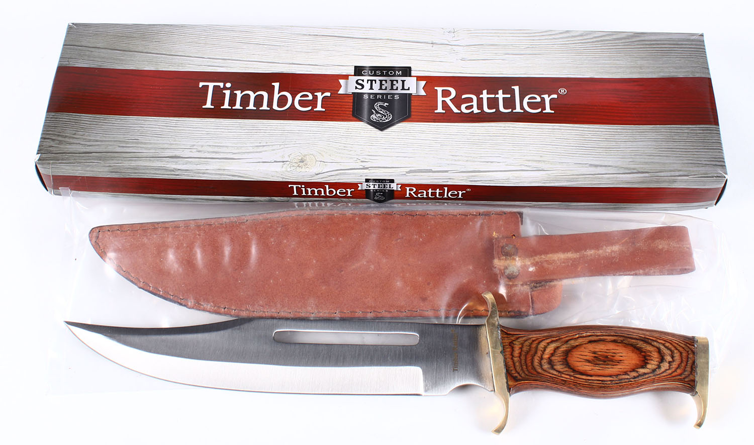 Large Timber Rattler fixed blade knife, in original box, 10.5'' blade. Grade: Excellent ++ - Value: 16 to 50