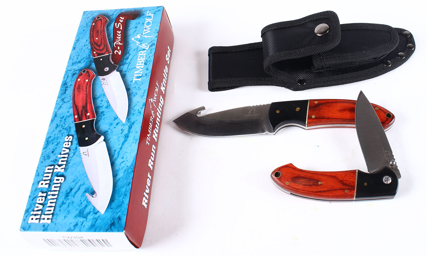 Timber Wolf River run knife set, in original box and sheath. Grade: Excellent ++ - Value: 20 to 60