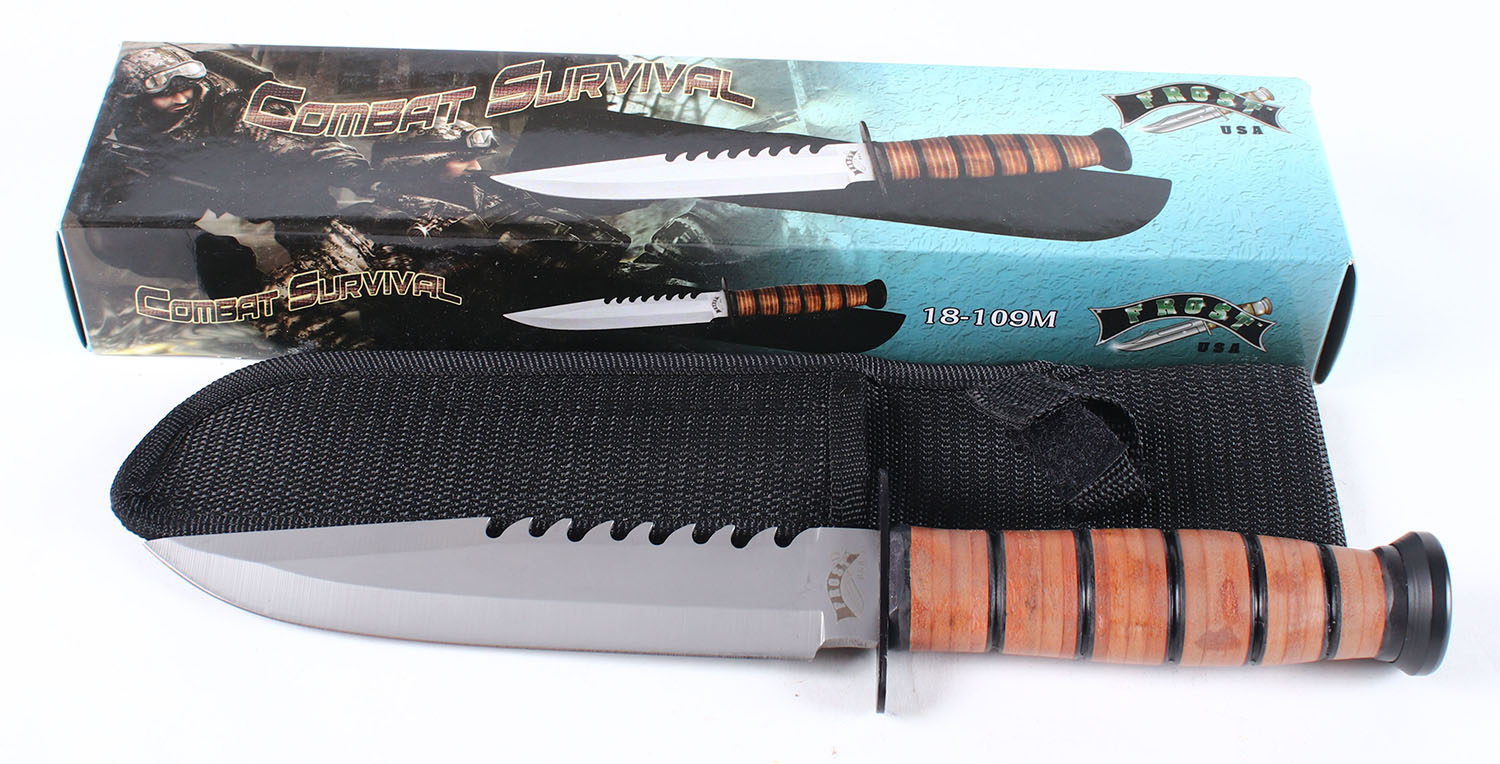 Combat Survival fixed blade knife, in original box, 7'' blade. Grade: Excellent ++ - Value: 20 to 60
