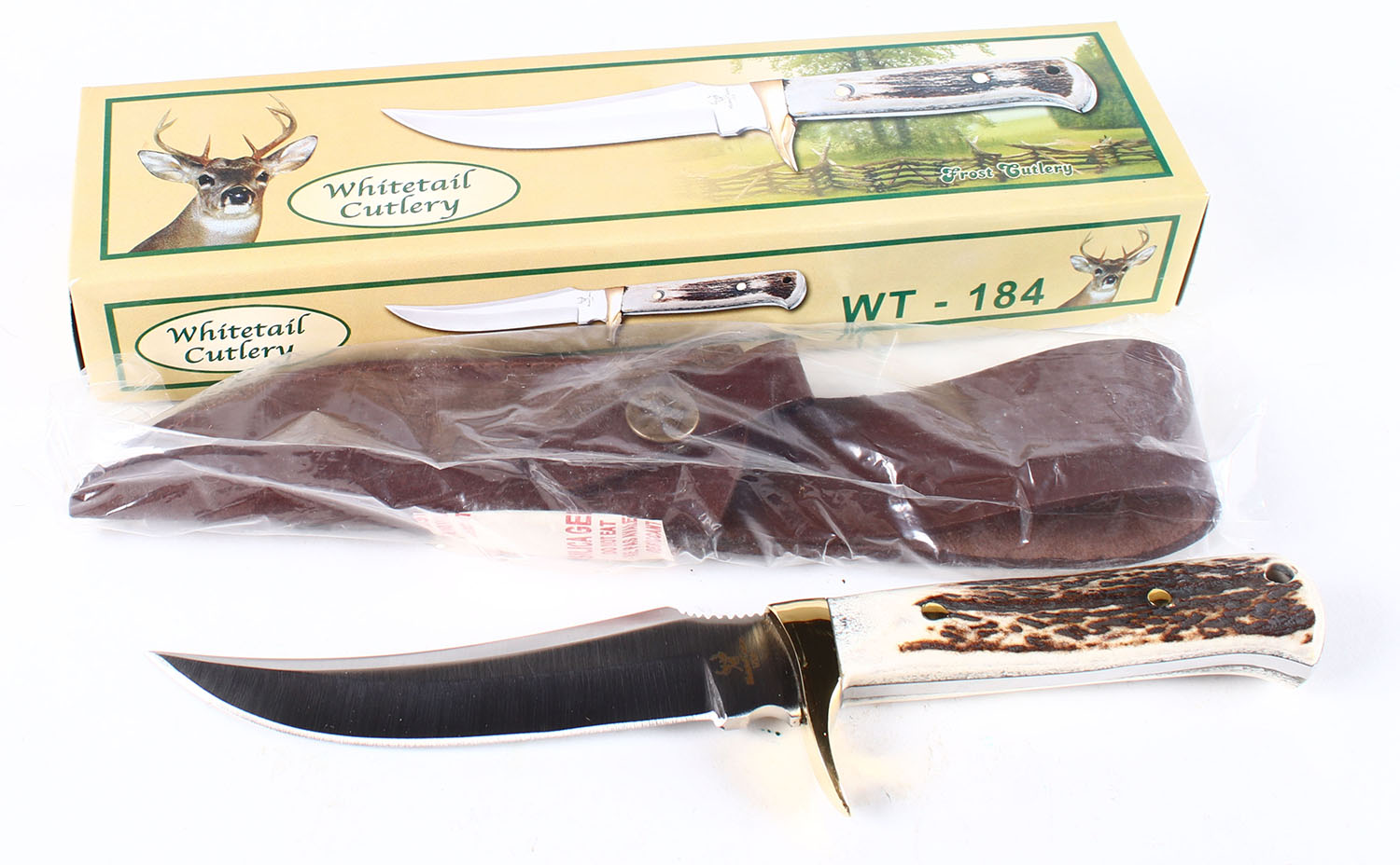 Frost Cutlery Whitetail fixed blade knife, in original box, 5'' blade. Grade: Excellent ++ - Value: 20 to 60