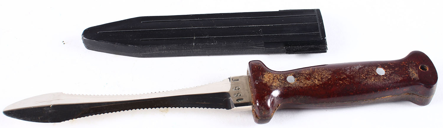 Unmarked knife, fixed blade, has sheath, 4.75'' blade, #186T. Grade: Excellent - Value: 10 to 50